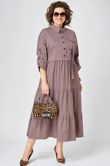 Платье 7176 молочный шоколад EVA GRANT предлагает сочетание стилевого разнообразия и комфорта благодаря использованию однотонного хлопка. Коллекция бренда EVA GRANT подчёркивает женственность и функциональность каждой детали, включая спущенное плечо, воротник-стойку и накладной карман с пряжкой. Полуприлегающий силуэт с расширенной юбкой и тремя воланами обеспечивает лёгкость и изящество, а цвет молочный шоколад добавляет универсальности для сочетания с различными аксессуарами. Это платье идеально подходит для круглогодичного использования, делая его подходящим как для работы, так и для отдыха. Регулируемые рукава с патой добавляют практичности, делают изделие модным и универсальным выбором.