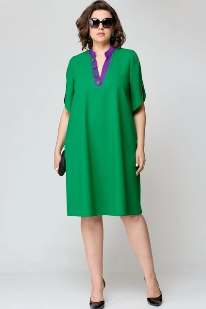 Платье женское нарядно-повседневное А-силуэта, выполнено из плательной ткани 2х расцветок. Вырез горловины V-образный, в виде планки со стойкой. По правой стороне планки отделочные пуговицы. Рукв втачной "Фэнтези". В боковых швах обработаны карманы и разрезы. Декором лужит съемный пояс.