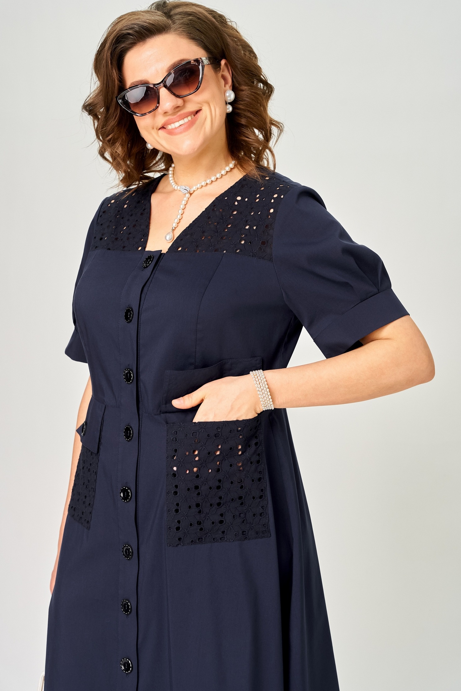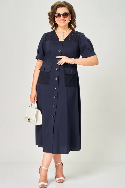 Платье 7200 синий от бренда EVA GRANT — это стильное полуприлегающее платье, выполненное из качественного хлопка с элементами шитья. Коллекция бренда EVA GRANT подчеркивает внимание к деталям: V-образный вырез, застежка на пуговицы и накладные карманы создают не только модный, но и функциональный образ. Особое внимание уделено манжетам на рукавах с втачными складками. Синий цвет платья подходит как для повседневных, так и для праздничных случаев. Длина платья — миди, а разрезы по боковым швам добавляют современности и трендовости вашему образу. Идеально подходит для теплого сезона.