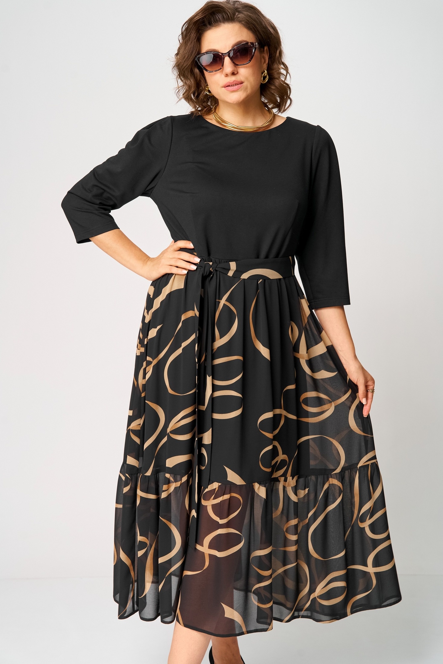 Платье 7216С черный + принт EVA GRANT идеально сочетает в себе комфорт и стиль. Коллекция бренда EVA GRANT создана для тех, кто ценит изысканность и элегантность. Платье выполнено из мягкого трикотажа и легкого шифона, что обеспечивает комфорт и свободу движений. Полуприлегающий силуэт с круглым вырезом и рукавами 7/8 добавляет образу изящества. Декоративная застежка капелька на спинке придает платью утонченную нотку, а съемный пояс подчеркивает талию. Черный цвет с оригинальным принтом делает платье универсальным выбором для вечерних выходов и повседневной носки. Модель подходит для осени и весны, идеальна на каждый день или для торжественного события.