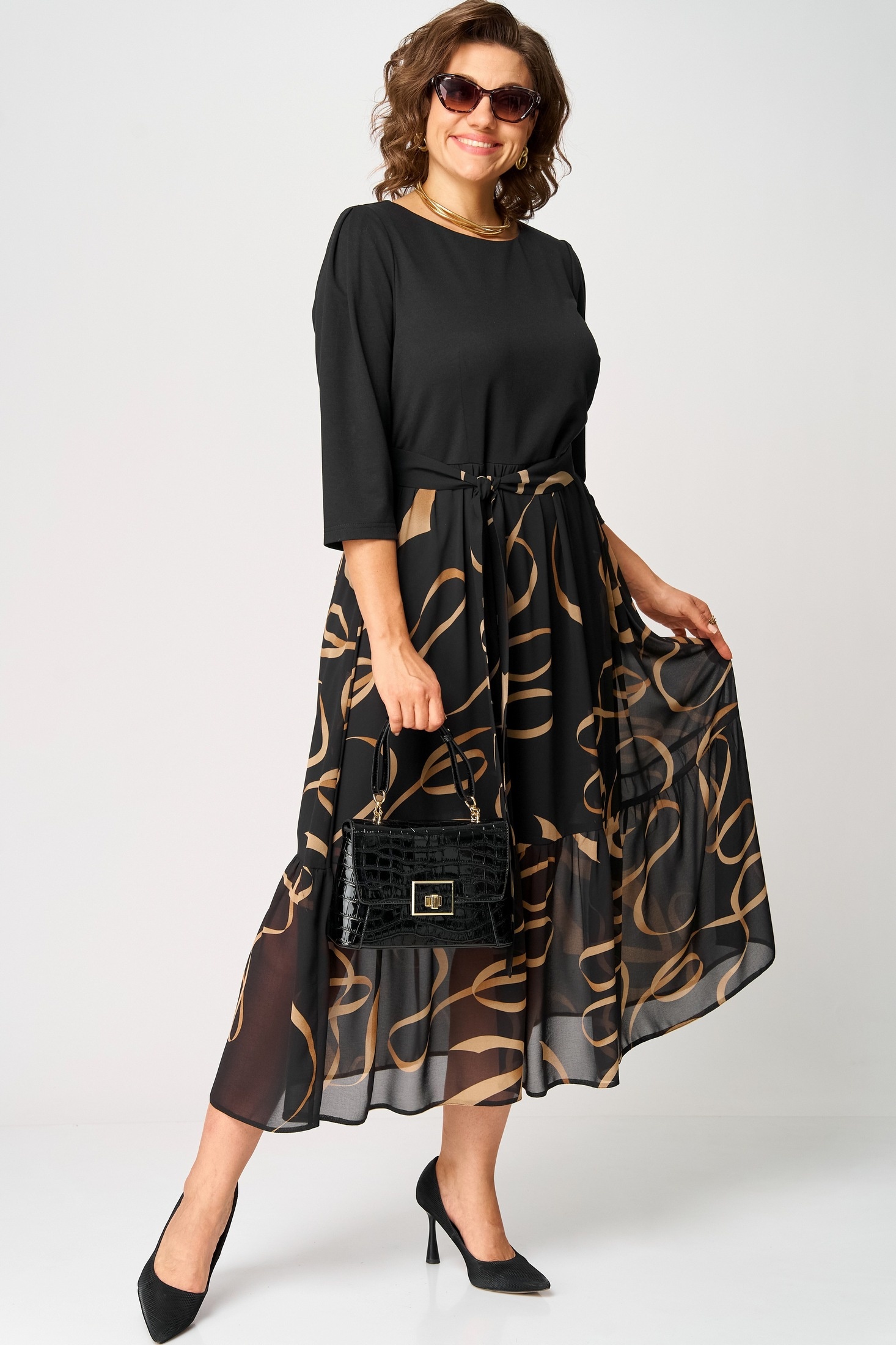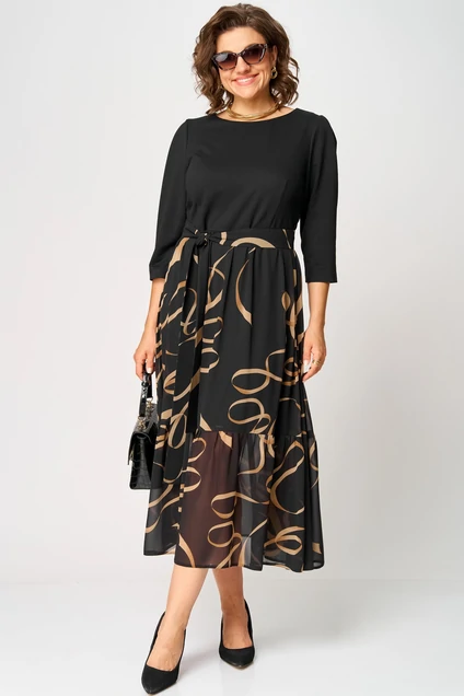 Платье 7216С черный + принт EVA GRANT
