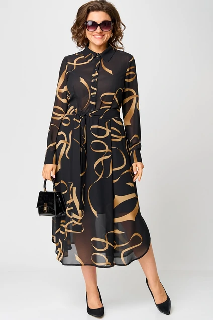 Платье 7303 черный с принтом EVA GRANT