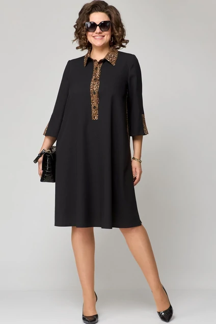 Платье женское повседневное А-силуэта выполено из плательной ткани в сочетании с отделкой из принтованной ткани. Вырез горловины - воротник на стойке рубашечного типа из отделочной ткани, по переду планка закрепленная наобметанные петли и пуговицы. Рукав втачной 784 по низу рукава обработана шлица с отделочными вставками. В боковвых швах обработаны карманы и вставки из отделочной ткани. Декором платья служат элементы из отделочной ткани.