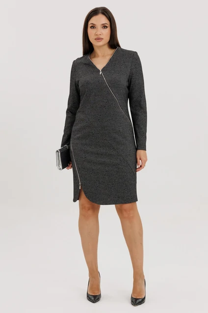 Стильное платье полуприлегающего силуэта втачного покроя создано для женщин, которые ценят комфорт и элегантность. Модель выполнена из мягкого трикотажного полотна с едва заметным вкраплением люрекса, что придаёт образу утончённое сияние и делает платье уместным как днём, так и вечером.