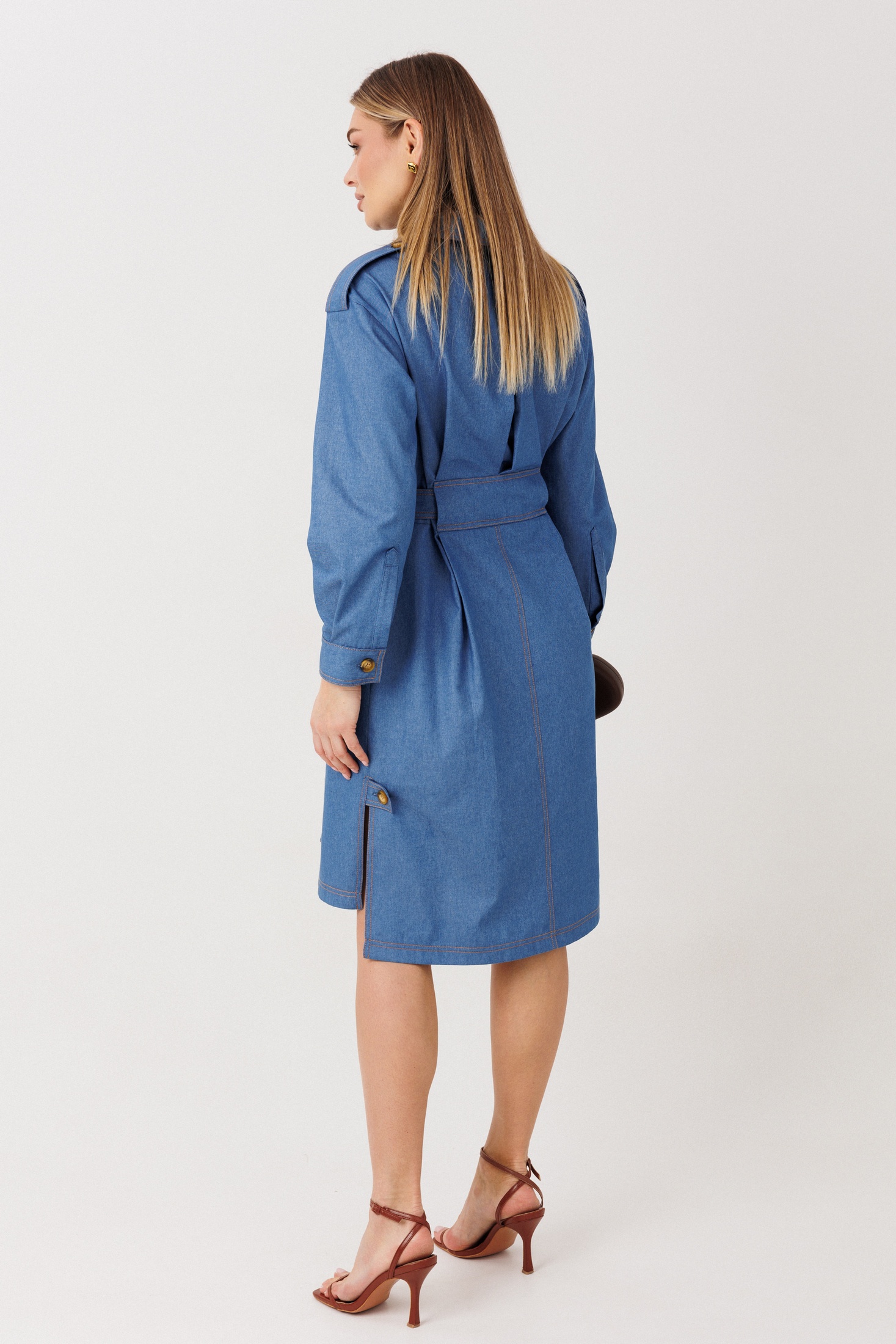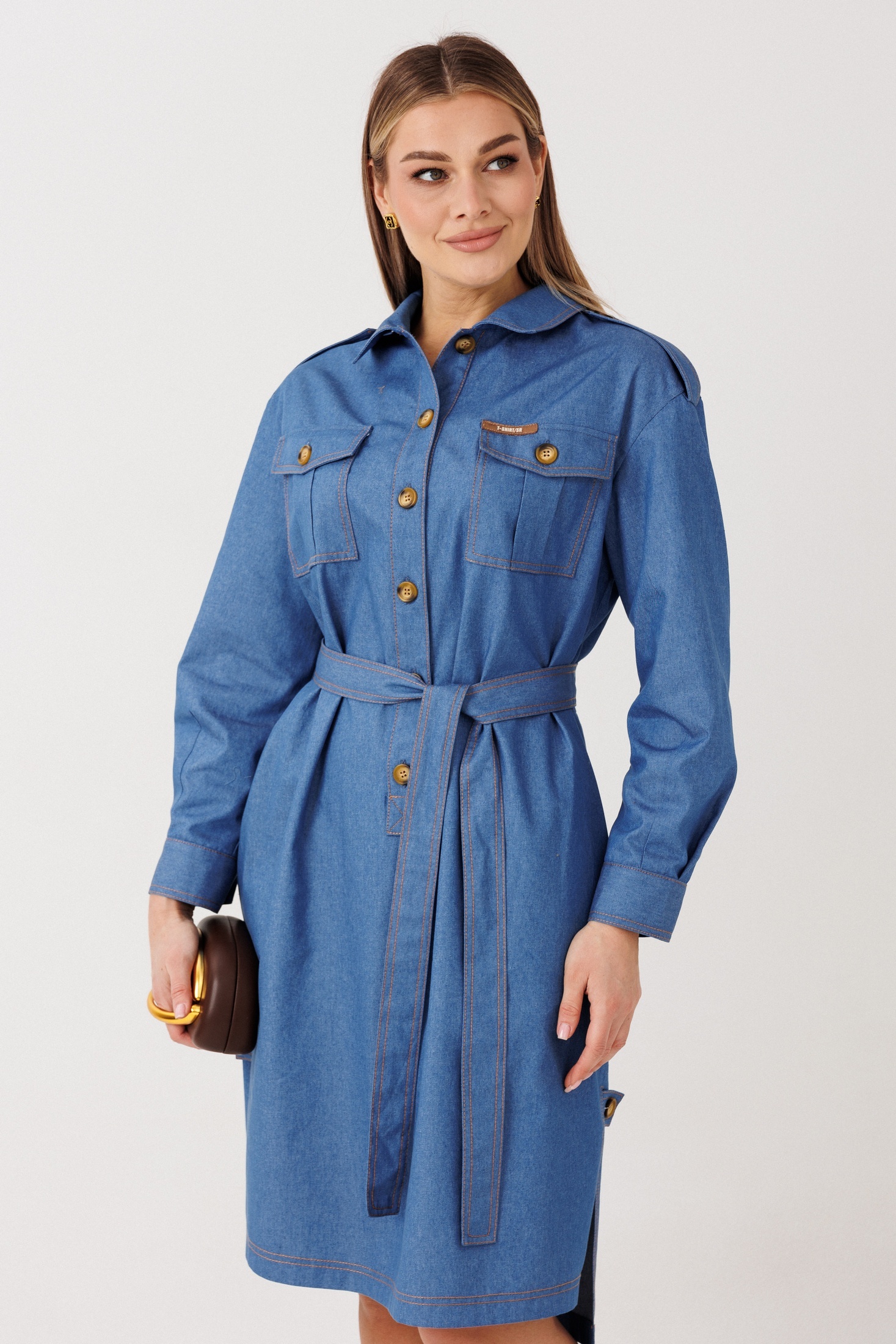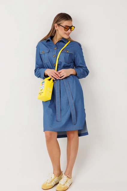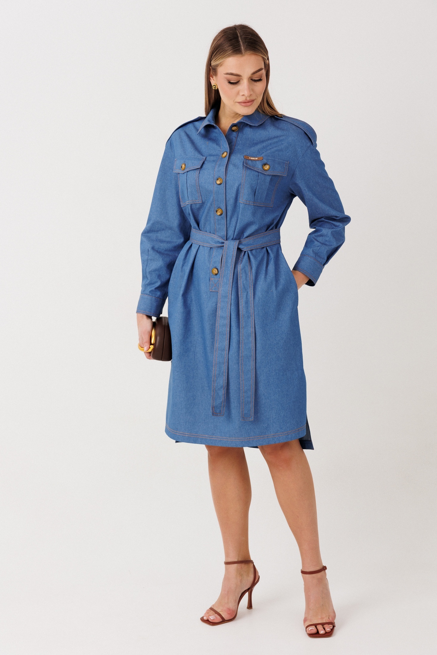 Платье 5396 FantaziaMod — этот стильный элемент гардероба в рубашечном покрое станет прекрасным выбором для повседневных образов. Коллекция бренда FantaziaMod выполнена из мягкого хлопкового плательного денима средней плотности, который обеспечивает комфорт и хорошо драпируется. Прямой фасон с аккуратной настрочной широкой кулисой подчеркивает талию и балансирует пропорции, делая платье универсальным для различных типов фигуры. Встречная складка на спинке добавляет свободу движения, а мягкие складки придают лёгкий объём и динамику. Платье идеально подходит для весны и осени, легко сочетается с кедами или босоножками. Универсальный синий цвет и длина миди делают его отличным вариантом на каждый день.