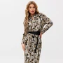 Элегантное платье из трикотажа с прямым силуэтом предлагает идеальное сочетание комфорта и стиля. Окрашенное в нежные светлые оттенки, платье украшено современным геометрическим принтом, создающим ощущение изысканной простоты. Вырез лодочка аккуратно подчеркивает шею, добавляя образу женственности. Длина изделия составляет 120 см, что идеально подходит для создания элегантного образа. Длинные рукава на 63 см с декоративными погонами и пришивной пуговицей добавляют изысканности. Особенный акцент в дизайне платья — разрез по низу с декоративной патой и пуговицей, предоставляющий свободу движения и непринуждённый шик. Это платье станет прекрасным выбором для походов на работу, вечерних мероприятий или просто для стильного повседневного образа.