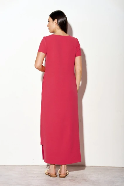Нарядно-повседневное платье прямого силуэта с втачными рукавами. Платье состоит из верхнего и нижнего. В нижнем платье в боковых швах карманы. В верхнем- по переду и по боку декоративные разрезы. Платья имеют разную длину.