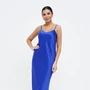 Элегантное платье миди черного цвета, выполненное из мягко струящейся ткани, создаст непревзойденный образ для вечернего выхода или особого события. Модель обладает тонкими регулируемыми бретелями, которые подчеркнут изящество плеч и добавят комфорта при носке. Особенностью данного наряда является изящная молния в боковом шве, обеспечивающая удобное надевание.
