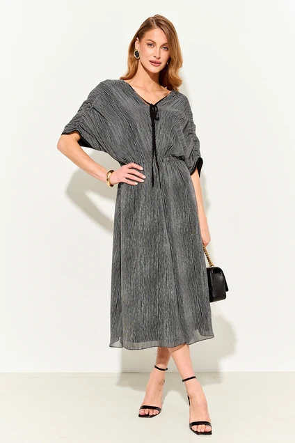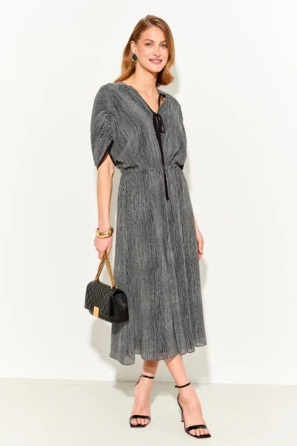 Платье женское полуприлегающего силуэта из шифона на подкладке. Перед платья с цельнокроенными рукавами и функциональной кулисой - завязкой; спинка и полочка имеет v-образный вырез горловины; по линии талии вставлена резинка; низ рукава обработан отделочной тесьмой. Верх платья можно регулировать по вашему желанию. Платье полностью соответствует заявленному размеру. Пожалуйста, пользуйтесь таблицей замеров готового изделия, чтобы подобрать идеальный размер. Уход за шифоном: - при стирке в стиральной машине выбрать бережный либо деликатный режим, - температура воды не выше 30 градусов; - рекомендована химчистка.