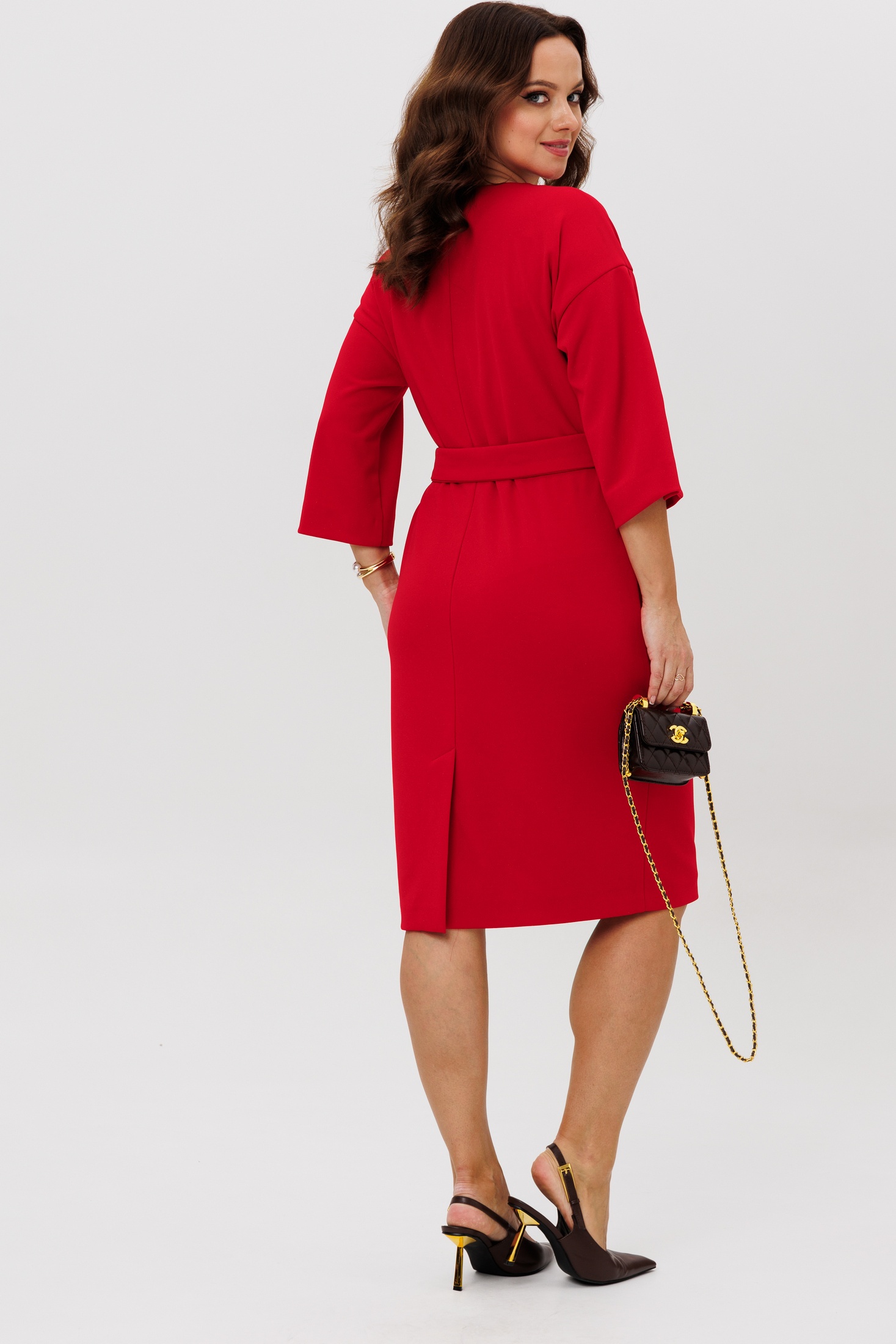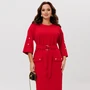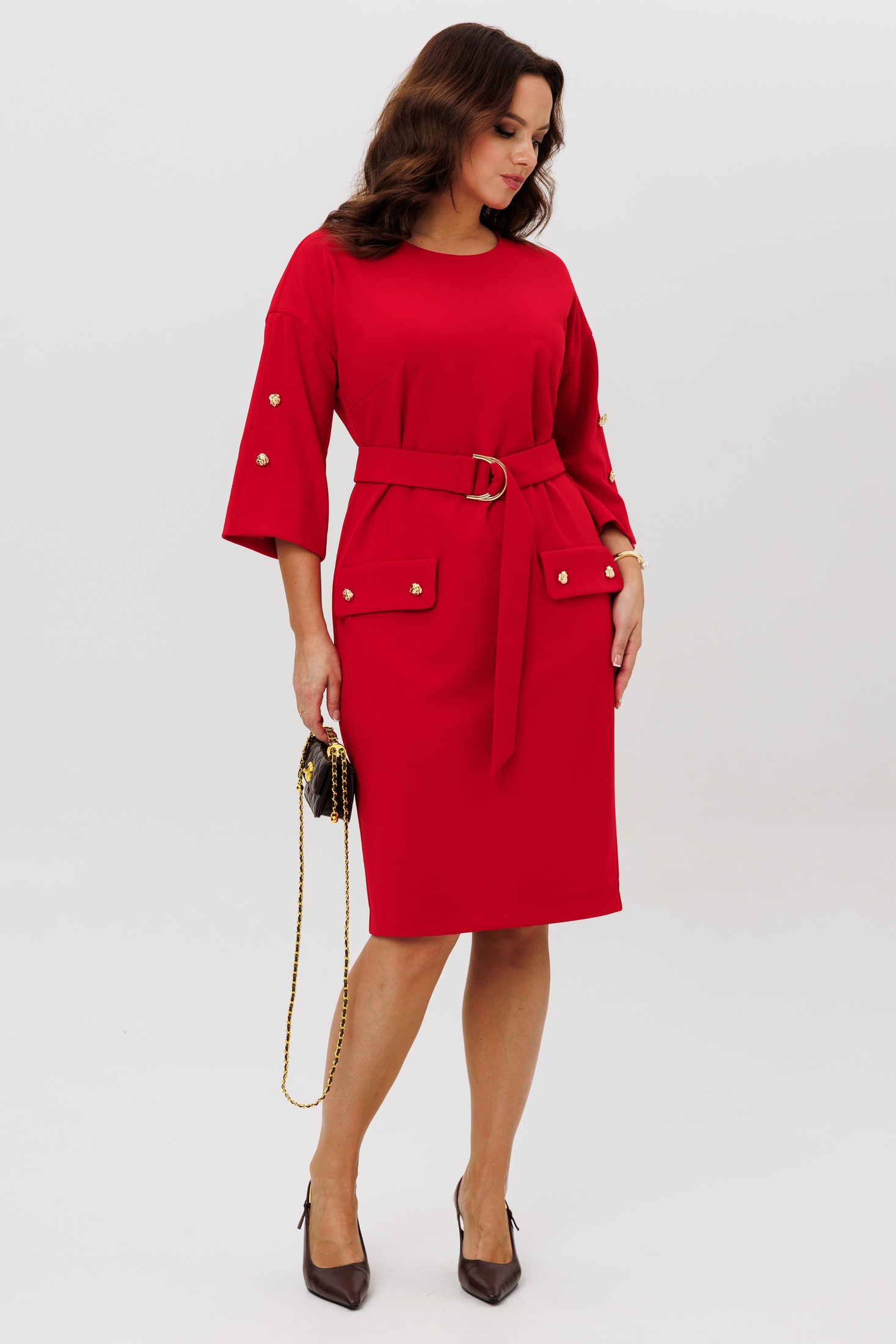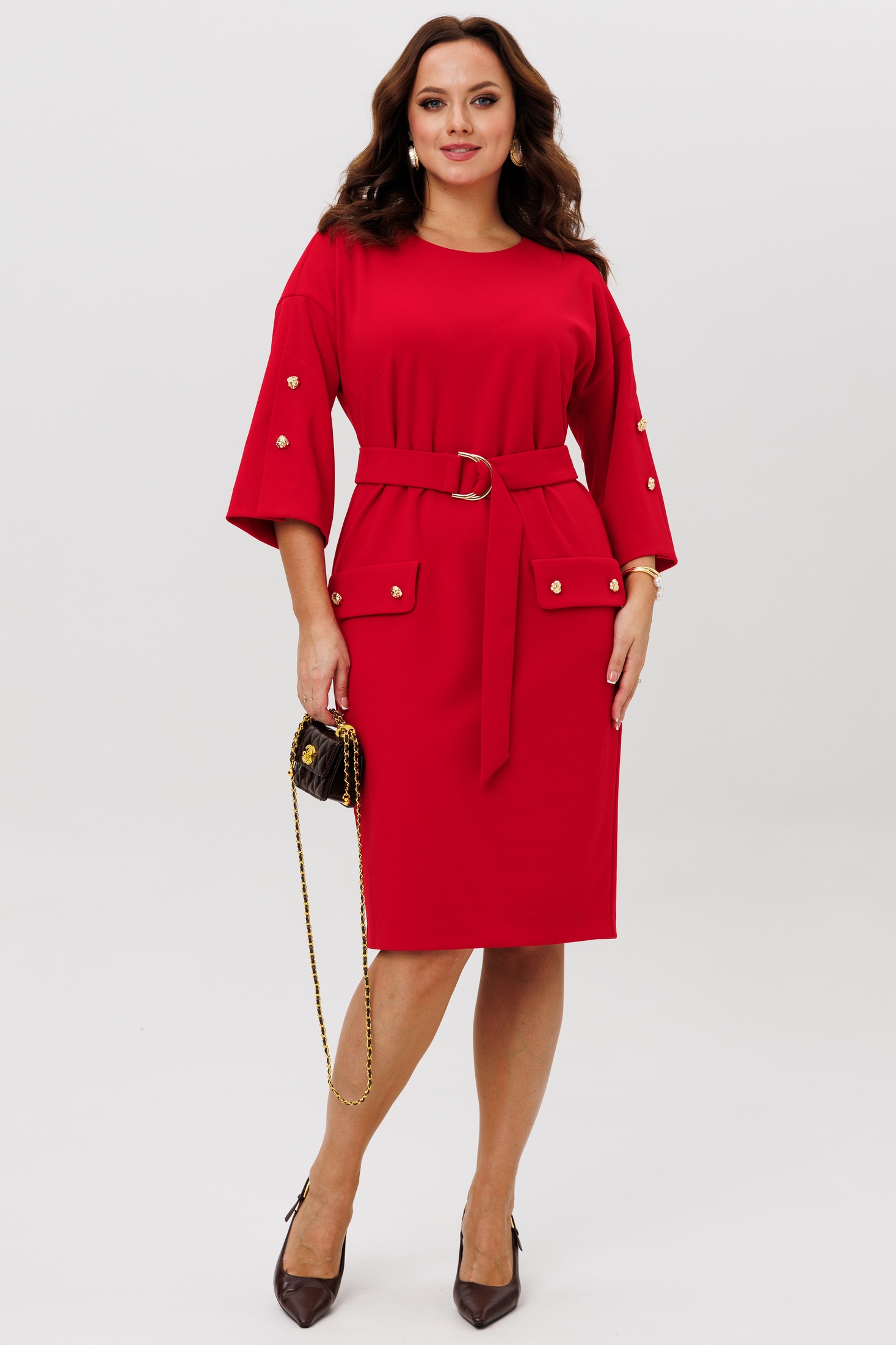 Нарядное платье из трикотажного крепа с мелким блеском станет прекрасным выбором для вечерних мероприятий,корпоративных встреч и праздничных торжеств.Особенностью этого стильного платья является его прямая модель ,которая подчеркивает женстсвенность и элегантность.Платье подходит для полных женщин. Платье прямого силуэта с нагрудными вытачками.Рукав спущенный с декоративной шлицей и пуговицами. Декором платья являются клапаны и пуговицы.Пояс эффектно подчеркивает талию.