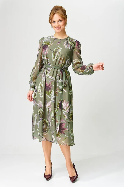 Платье 5103 олива + бордовый зеленвый цветок GIZART