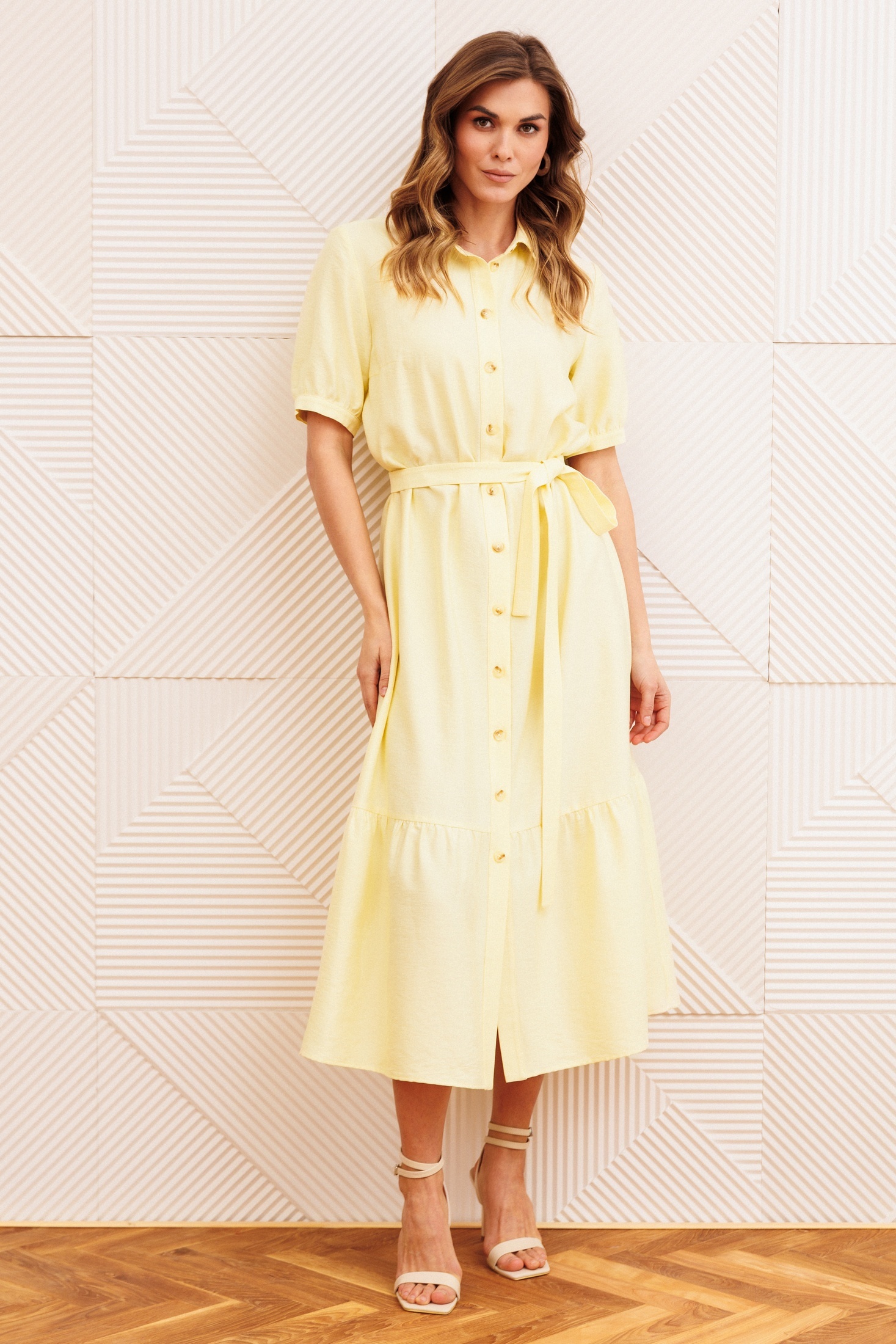 Платье 5126-2 сливочное масло GIZART — стильное решение для современных модниц. Коллекция бренда GIZART предлагает легкое платье из вискозы с добавлением полиэстера, что обеспечивает комфорт и дышащие свойства ткани. А-силуэт с рубашечным воротником и центральной застежкой на пуговицы дополняется изысканным съемным поясом, подчеркивающим талию. Втачные рукава с притачными манжетами и волан по низу платья добавляют изюминку образу. Длина платья по спинке составляет 127 см, что делает его идеальным вариантом для весенне-летнего сезона. Мягкий сливочный цвет прекрасно подойдет как для повседневных встреч, так и для особых мероприятий.
