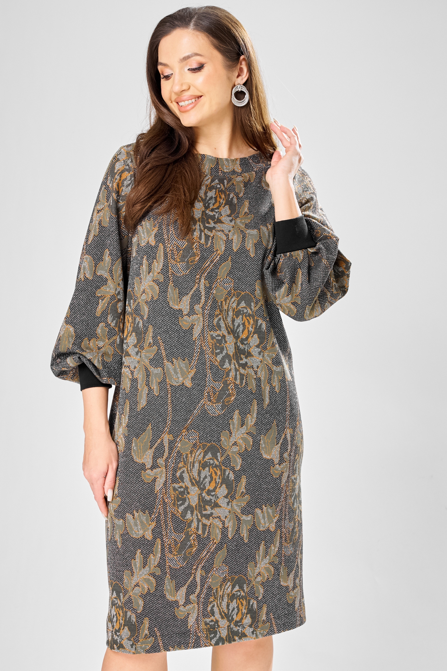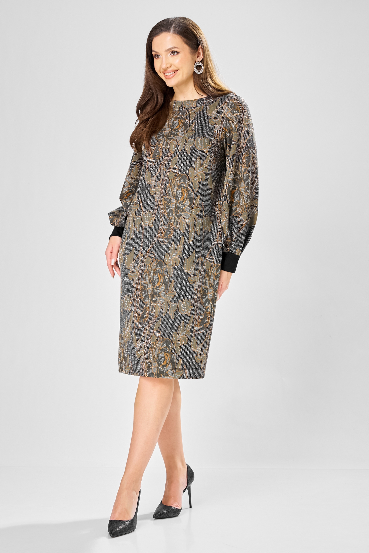Платье 7385-1 серо-оливковый GIZART — это идеальный выбор для стильного образа. Коллекция бренда GIZART предлагает платье из плотного трикотажного полотна с добавлением люрекса, который придает изделию легкое сияние. Прямой силуэт и изящные нагрудные вытачки создают утонченную форму, а длина в 100 см делает его универсальным для любого случая. Лодочковая горловина и рукава со складками на манжете добавляют изысканности образу. Серо-оливковый цвет с рисунком идеально подойдет для осенне-зимнего сезона и разнообразит ваш гардероб. Это платье станет отличным выбором как для повседневных выходов, так и для официальных мероприятий.