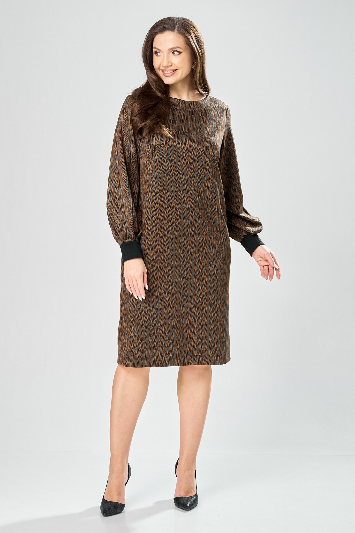Платье 7385-1 зелено-рыжий GIZART привлекает внимание своим прямым силуэтом и уникальным рисунком. Коллекция бренда GIZART использует плотное трикотажное полотно, обеспечивающее комфорт и стиль на каждый день. Материал платья содержит вискозу, что делает его приятным на ощупь, а полиэстер добавляет устойчивость к износу. Горловина лодочкой с обработкой планкой придаёт изысканный вид, а одношовные рукава с манжетами и складками добавляют интересный акцент. Боковые карманы увеличивают функциональность изделия. Идеально подходит для осеннего сезона, это платье предназначено для повседневной носки. Зелёно-рыжий цвет делает его модным выбором как для работы, так и для отдыха. Длина платья составляет 100 см, а рукава — 60 см.