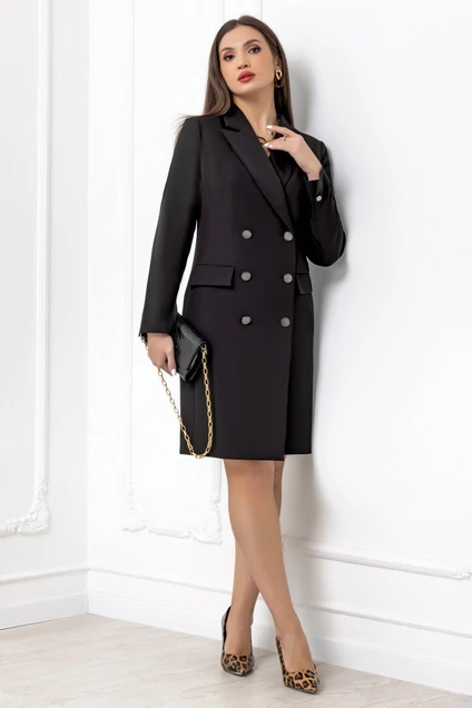 Трендовое платье-пиджак полуприлегающего силуэта с отрезными бочками из качественного костюмного материала от белорусского бренда ГолдСтайл идеально впишется в ваш гардероб. Двубортное платье-пиджак или платье смокинг один из главных трендов этого сезона и фаворит всех модниц. Платье средней длинны полуприлегающего силуэта на подкладке с V-образным вырезом и воротником пиджачного типа. Перед оформлен вертикальными вытачками до входа в прорезные карман. Карманы, действующие с клапаном и двумя обтачками. Спинка цельная с отрезными бочками. Втачные рукава можно легко подвернуть что добавляет удобства и практичности. Рукав облеченный без подкладки. Вся обработка выполнена по итальянской технологии. Белорусский бренд ГолдСтайл - гарантия отличного качества. Мы с трепетом и любовью относимся к созданию наших моделей для того чтобы они радовали Вас каждый день.