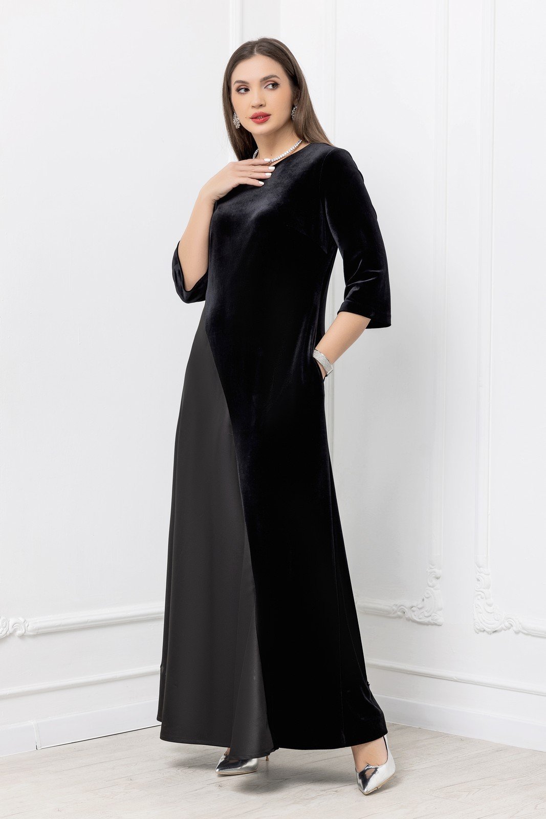 Праздничное бархатное платье макси от бренда ГолдСтайл представляет собой идеальный выбор для особых событий. Это абайя-стильное платье без застежки, выполненное из высококачественного материала, состоящего из 83% полиэстера, 12% вискозы и 5% эластана, что обеспечивает комфорт и поддержку. Отделка из 98% полиэстера и 2% эластана добавляет платью изысканность и долговечность. Длина платья макси с фигурной линией подреза и вставкой из матового плотного атласа подчеркивает элегантность и роскошь его обладательницы. Лаконичный крой и чистые изысканные линии, идеально подходят для вечерних мероприятий и торжеств. Платье имеет карманы в боковых швах, что удобно для хранения мелких предметов. Тип рукава 3/4 и ростовка для высоких добавляют платью особенный шарм и удобство в носке. Фактура ворсистого материала придает платью дополнительную теплоту и объем, делая его идеальным выбором для холодного времени года. Выбирая это праздничное бархатное платье макси от ГолдСтайл, вы гарантируете себе не только стиль и комфорт, но и незабываемые впечатления от каждого вашего праздника. Белорусский бренд ГолдСтайл - гарантия отличного качества. Мы с трепетом и любовью относимся к созданию наших моделей для того чтобы они радовали Вас каждый день.