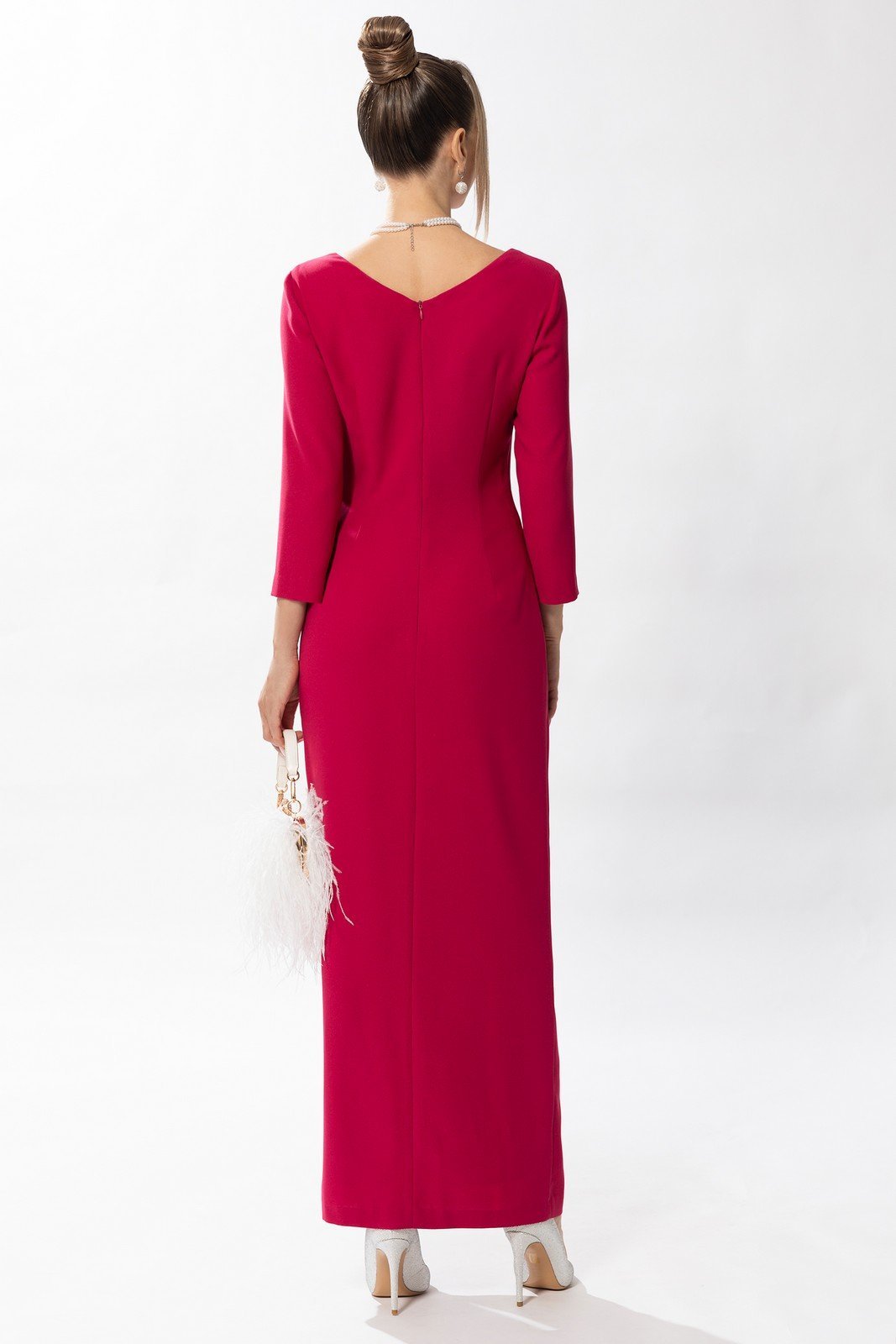 Элегантное длинное платье насыщенного розового цвета - идеальный выбор для торжественных мероприятий. Модель выполнена из гладкой ткани, подчеркивающей изысканность образа. Платье оформлено квадратным вырезом горловины спереди и элегантным V-образным вырезом сзади. Рельефы, выходящие из грудной области, придают стильный объем и аккуратно облегают силуэт, делая акцент на талии. Рукава длиной 3/4 идеально дополняют образ, внося элемент утонченности. Платье оснащено потайной молнией в среднем шве спинки для удобства надевания. Это роскошный и современный выбор для любого вечера.