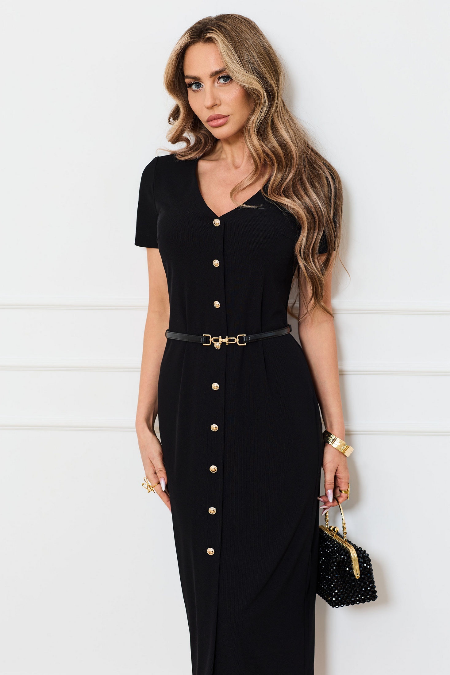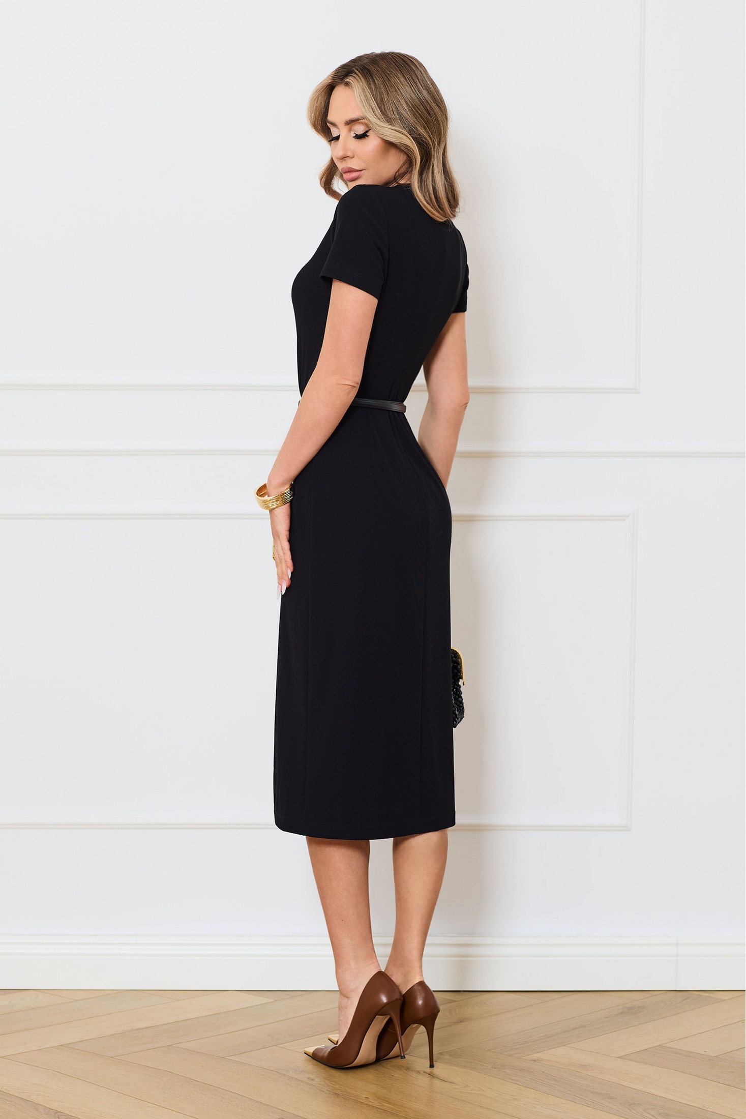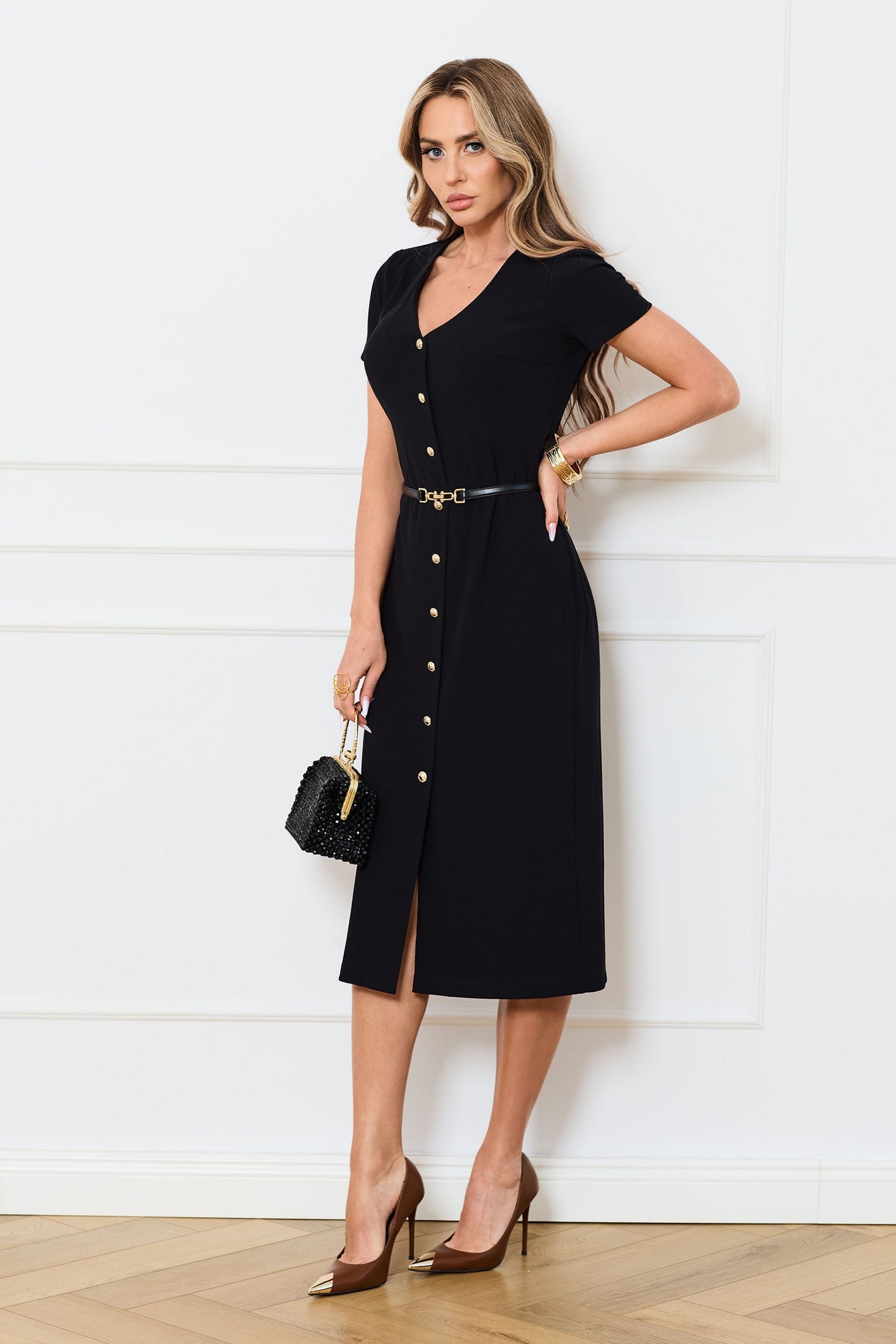 Платье 44291 черный Golden Valley — это идеальный выбор для вашего гардероба. Коллекция бренда Golden Valley предлагает платье из высококачественных материалов: полиэстер, вискоза и спандекс обеспечат комфорт и долговечность. Прямой силуэт с центральной застежкой на пуговицы дополнен V-образным вырезом и съемным поясом, что подчеркивает вашу талию. Короткие втачные рукава делают это платье отличным вариантом для теплого времени года. Благодаря универсальному черному цвету и классическому стилю, платье подходит как для офиса, так и для повседневных выходов. Глубокий V-образный вырез и утонченные нагрудные вытачки добавляют элегантности вашему образу.