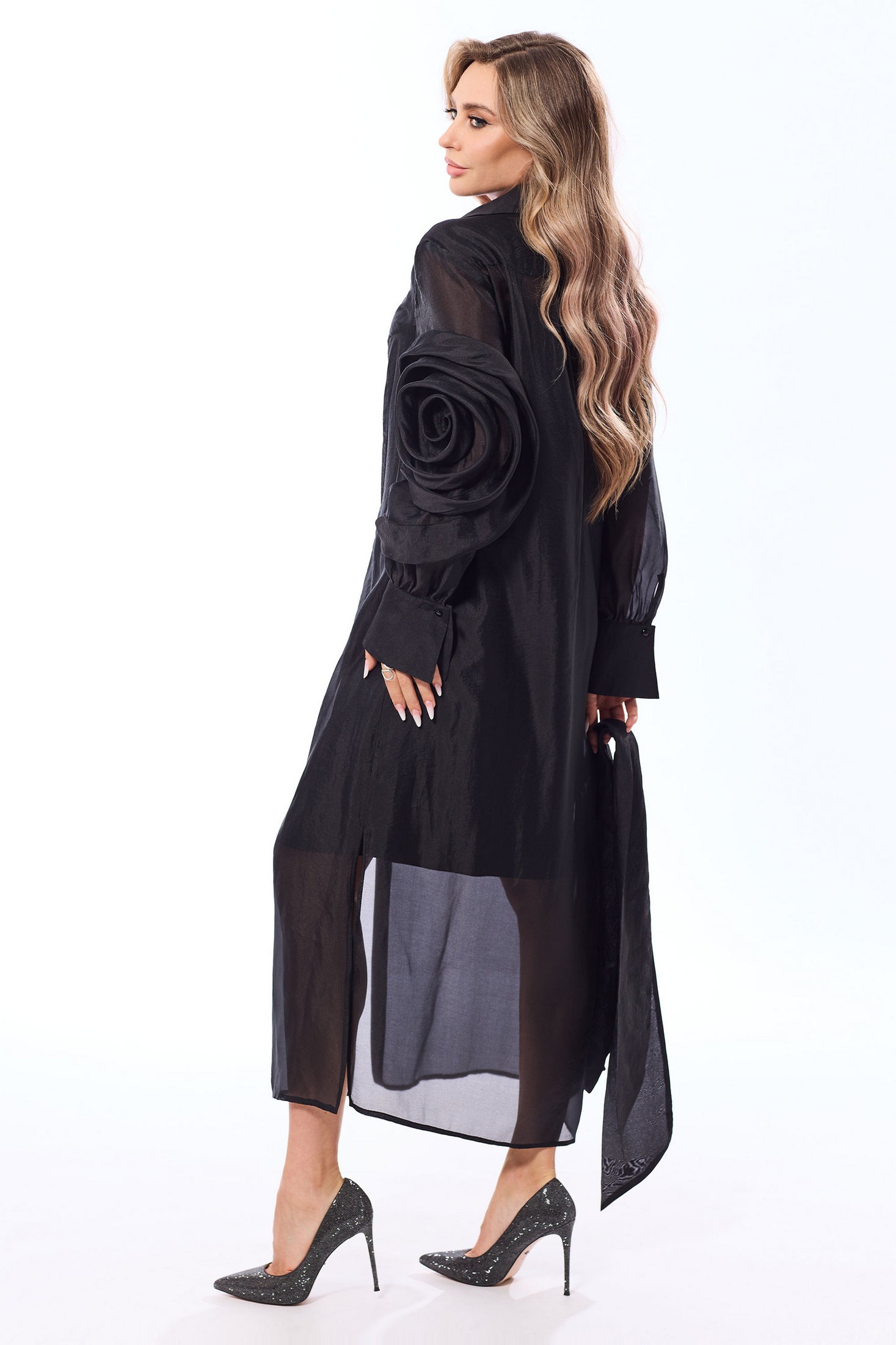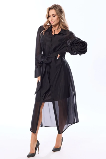 Платье 44318 черный от Golden Valley — выбор для современной женщины. Коллекция бренда представляет утонченное платье из вискозы и полиэстера, идеально подходящее для осенне-весеннего сезона. Прямой силуэт и длинные рукава с манжетами создают стильный облик. Центральная застежка на пуговицы и декор в виде розы на левом рукаве добавляют уникальности. Длина миди с боковыми разрезами подчеркивает женственность и шарм. Платье двуслойное: верхний слой с воротником-стойкой и декоративными элементами дополняют нижнее платье на бретелях. Подходит для праздников и повседневного ношения, делая его универсальной частью гардероба.