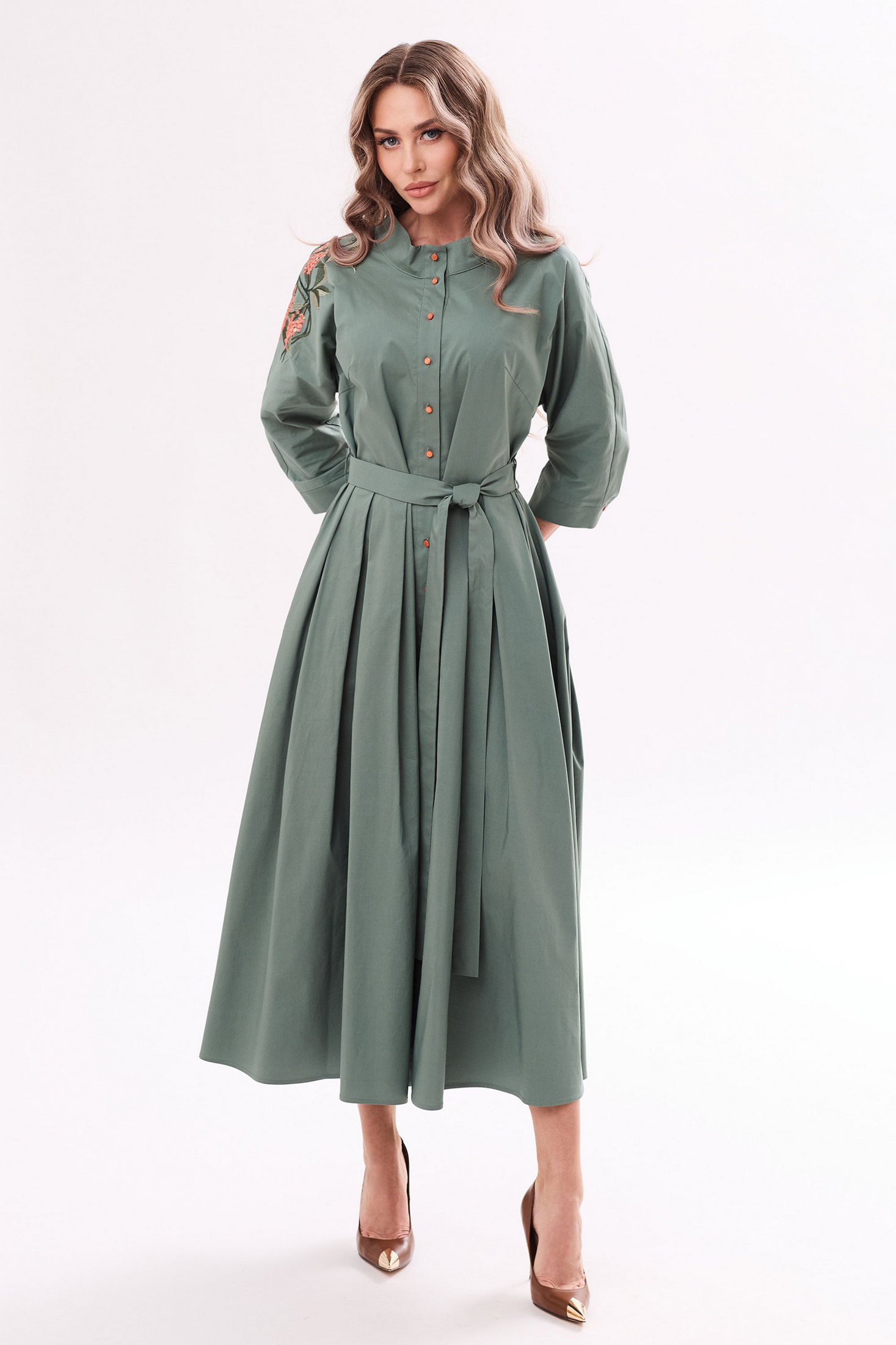 Платье 44355 зеленый от коллекции бренда Golden Valley выделяется своей элегантностью и современностью. Изготовлено из качественной ткани с содержанием хлопка, обеспечивающего комфорт и долговечность. Полуприлегающий силуэт в сочетании с бантовыми складками придает платью утонченный вид. Центральная застежка на пуговицы и планка добавляют стильных акцентов, а съемный пояс подчеркивает линию талии. Вышивка на правом рукаве и полочке делает образ ярче и выразительнее. Практичные боковые карманы обеспечивают дополнительный комфорт. Платье идеально подходит для весенне-осеннего сезона и будет отлично смотреться на работе или праздничном событии. Благородный зеленый цвет добавляет свежести и утонченности.