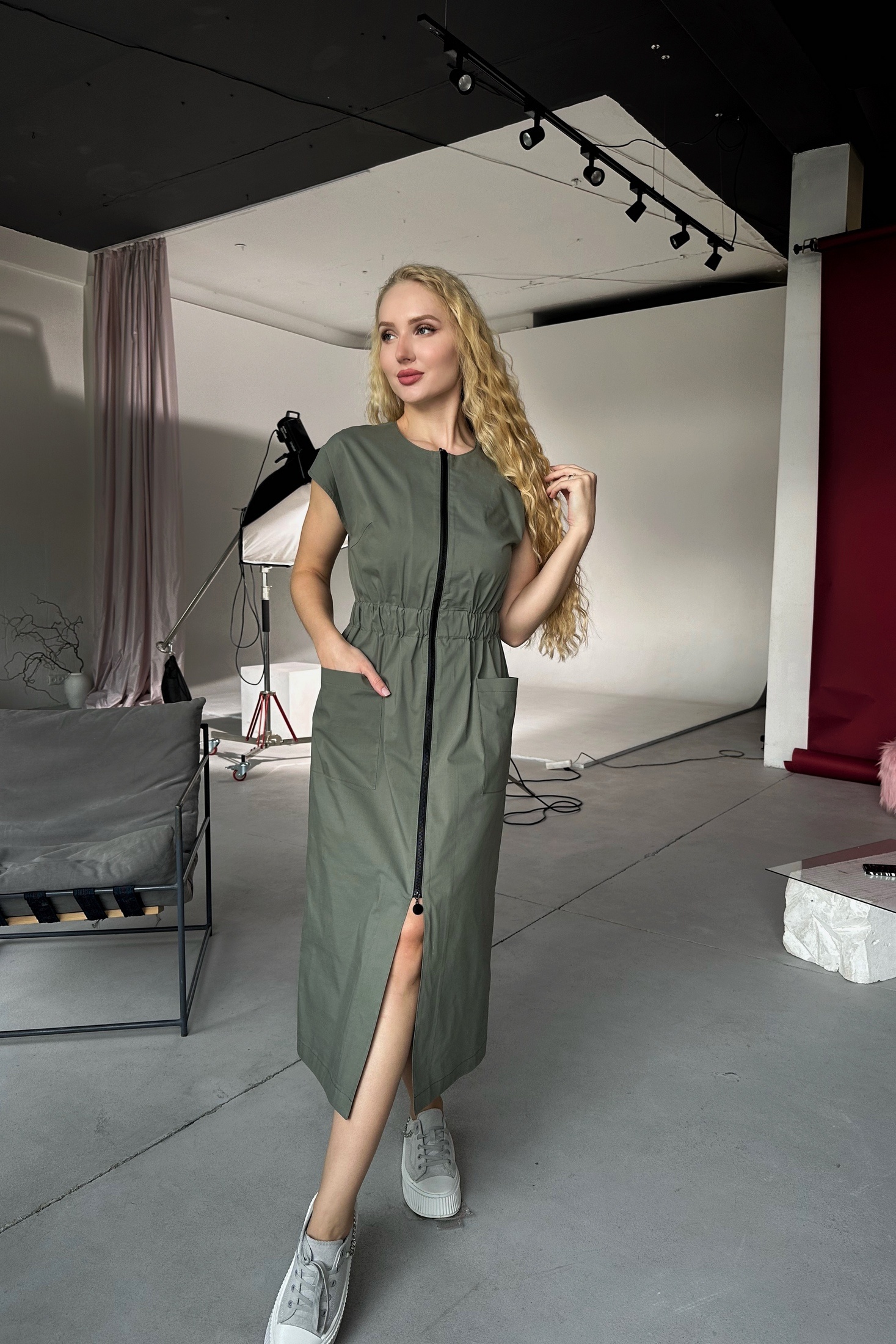 Платье 25ICY082Х хаки ICY Street — уникальное женское платье в стиле сафари. Коллекция бренда ICY предлагает прямой силуэт с акцентированной талией благодаря кулиске с резинкой шириной 5 см. Изготовлено из смеси хлопка, полиэстера и эластана, что обеспечивает комфорт и износостойкость. Длина платья достигает миди, что делает его идеальным для летнего сезона. Центральная застежка на тесьму-молнию длиной 80 см и нагрудная кокетка с карманом дополняют универсальный дизайн. Круглый вырез горловины и рукава «летучая мышь» добавляют мягкости образу. Платье подходит для повседневного ношения и работы, подчёркивая изысканный стиль в цвете хаки.