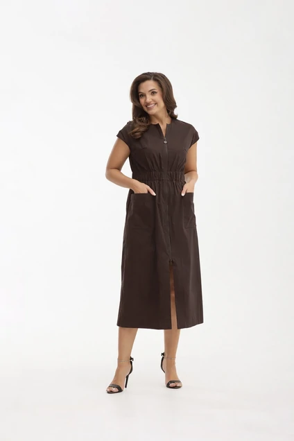 Платье 25ICY082Ш шоколад ICY Street от коллекции бренда ICY — это идеальное сочетание стиля и комфорта. Изготовленное из плательной ткани с добавлением хлопка, полиэстера и эластана, оно гарантирует мягкость и приятное прилегание. Прямой силуэт и кулиска с резинкой на талии подчеркивают фигуру, создавая женственный образ. Вырез горловины круглый, а застёжка молния длиной 80 см добавляет удобства при носке. Декоративные детали включают нагрудную кокетку и накладной карман, а широкий рукав "летучая мышь" добавляет современности. Шоколадный цвет платья универсален и подходит для любого случая. Идеально для летних прогулок и офисного дресс-кода.