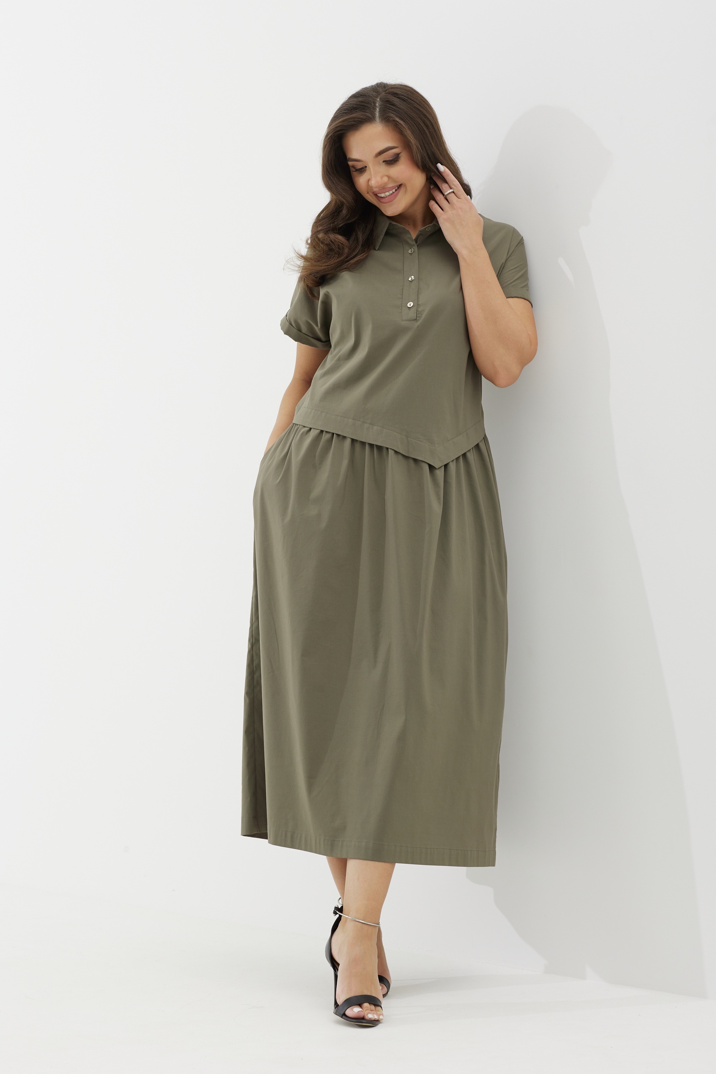 Платье 25ICY087Х хаки ICY Street — это воплощение стиля бохо, созданное для современных женщин. Коллекция бренда ICY Street предлагает удобство и выразительность благодаря платью из мягкой ткани со стрейчем, что обеспечивает комфорт в течение всего дня. А-образный оверсайз-силуэт и рубашечный воротник на стойке подчеркивают уникальность и легкость образа. Асимметричный отлетный подрез и сборка верхнего края юбки создают динамику и объем. Практичные карманы добавляют удобства. Сезон: весна-осень. Платье идеально для города, работы и отдыха. Цвет хаки придаёт универсальность и стильность вашему гардеробу.