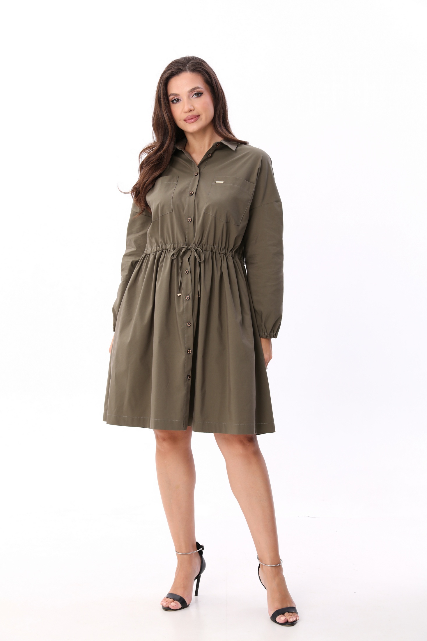 Платье 25ICY094Х-3 хаки от ICY Street идеально сочетает в себе стиль сафари и свободу движений. Коллекция бренда ICY Street предлагает идеальный вариант для летнего гардероба. Платье выполнено из приятной хлопковой ткани с добавлением полиамида и эластана, обеспечивающей комфорт и лёгкость. Фасон с прямым силуэтом и регулировкой талии с помощью кулиски позволяет варьировать образ от приталенного до расслабленного. Лёгкая сборка юбки создаёт женственный объём, а спущенные плечи и рукава с резинкой дополняют образ. Декорировано стильными накладными карманами и металлическим акцентом на грудной области для дополнительного шика. Идеально подходит для повседневных прогулок или расслабленного отдыха. Цвет хаки добавляет классический акцент, а длина достигает колена, подчёркивая актуальность и комфорт.