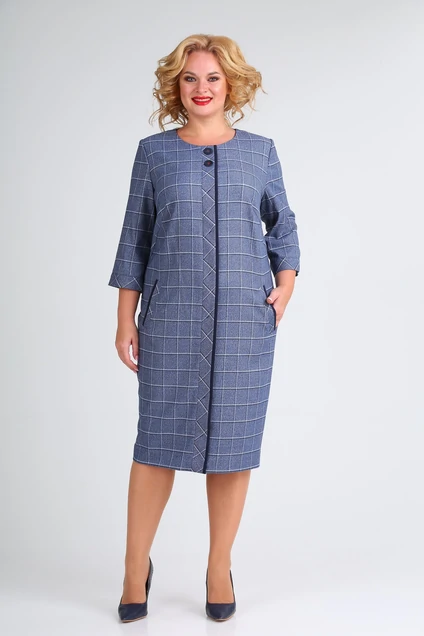 Платье полуприлегающего силуэта с круглым вырезом горловины. По центру планка, по краю планки контрастная бейка, по планке - закрепки. Перед с нагрудными вытачками от боковых швов и карманами с листочками. Край листочки с контрастной бейкой. Рукав втачной, двухшовный, с разрезом в локтевом шве, с притачной манжетой с петлей-пуговицей. Спинка со средним швом и разрезом в шве.