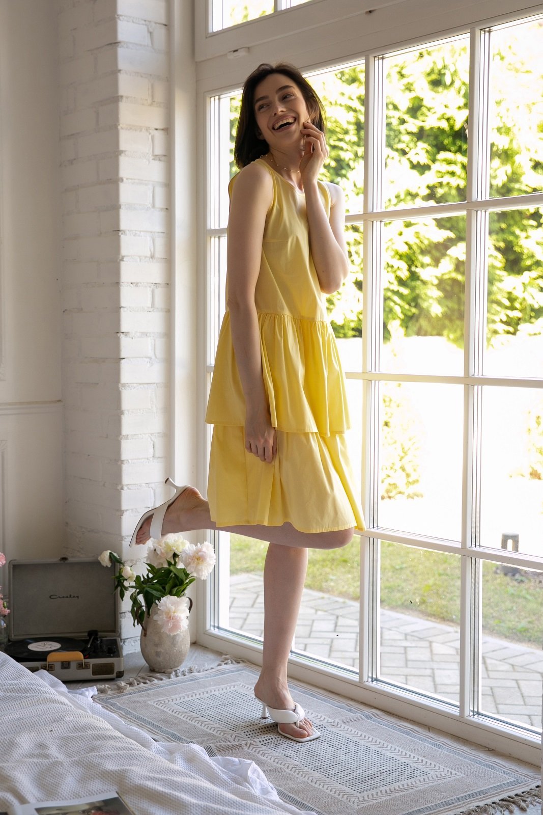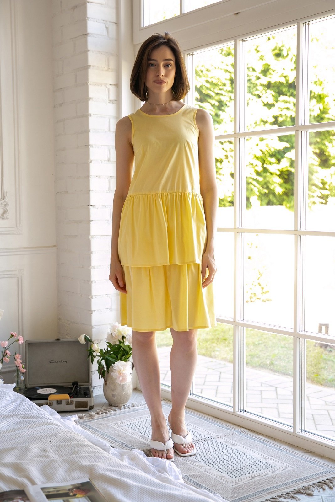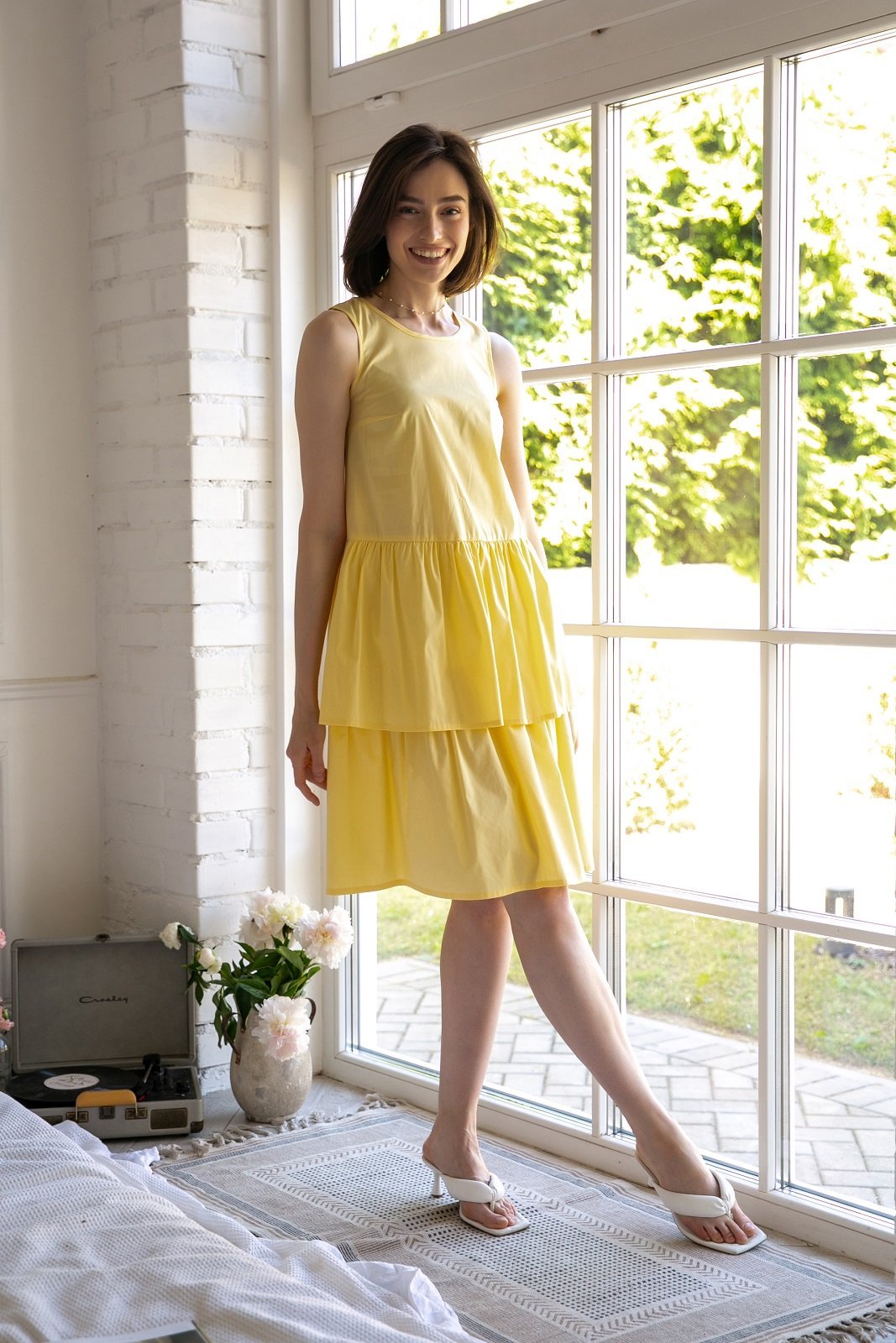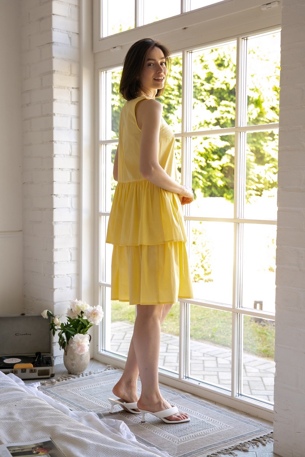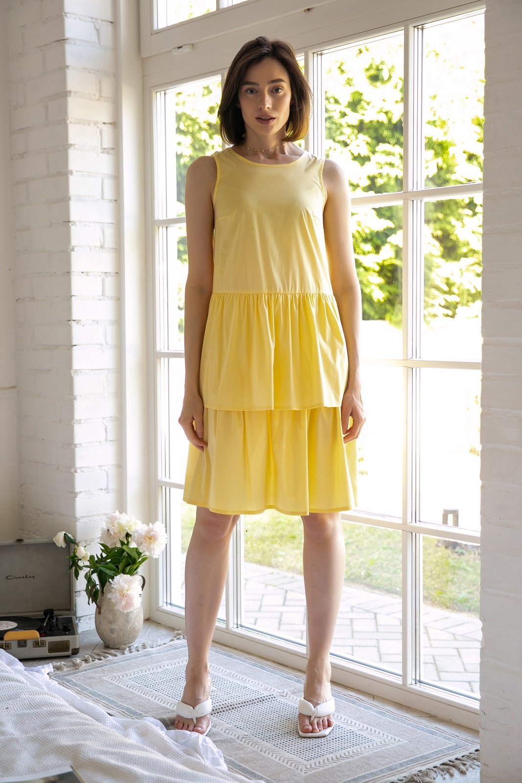Легкое струящееся платье с воланами без рукавов станет вашим фаворитом: удобное, стильное, приятное к телу. Дополнив его подходящими и яркими аксессуарами его сможете надеть на любое мероприятие.