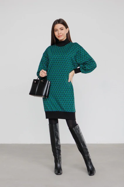 Платье женское трикотажное длиной до колена, по горловине и рукавам контрастная резинка. Отличное платье для повседневных образов, приятная к телу ткань, актуальный фасон, яркий принт - идеальный выбор на каждый день.