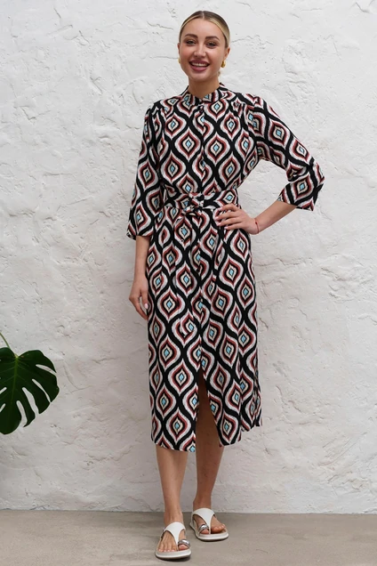Встречайте обновку вашего гардероба – женское платье-рубашку с длиной миди и укороченным рукавом! Этот стильный и удобный элемент одежды идеально подойдет для создания модных и комфортных образов на каждый день. Платье выполнено из легкой и приятной к телу ткани, которая обеспечивает оптимальный комфорт и свободу движений. Благодаря своему универсальному дизайну, оно идеально сочетается с различными аксессуарами и обувью, позволяя вам выглядеть стильно и элегантно в любой ситуации. Отличительной особенностью платья является наличие пояса с металлической пряжкой, который позволяет подчеркнуть талию и создать женственный силуэт. Яркий и оригинальный принт ткани добавит вашему образу свежести и неповторимости. Это платье-рубашка станет вашим незаменимым помощником в создании множества образов – от деловых до вечерних. Оно идеально подойдет как для повседневной носки, так и для особых случаев, таких как вечеринка или романтический ужин. Не упустите возможность обновить свой гардероб с этим стильным и удобным платьем-рубашкой! Будьте всегда на пике моды и наслаждайтесь комфортом каждый день!