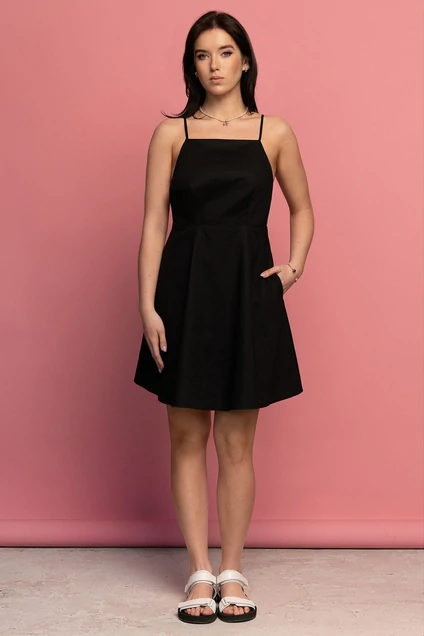 Сарафан молодежный из ткани однотон приталенного силуэта с подкладкой по лифу,с молнией застежкой в среднем шве спинки.По бокам тесьма соединяющая части лифа и спинки,также бретели на плечах.Нижняя часть изделия с расклешением по низу,с карманами в боковых швах. Длина спинки 79,5 см.