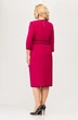 Платье женское прямого силуэта из плательной ткани. Горловина круглой формы. По переду рельефы, отрезное по талии, по юбке элемент запаха. По спинке средний шов, по горловине разрез с застежкой на потайную петлю и пуговицу. Отделка в виде окантовки горловины, низа рукавов, отлетных деталей юбки. В съемный пояс с зажимами на концах.