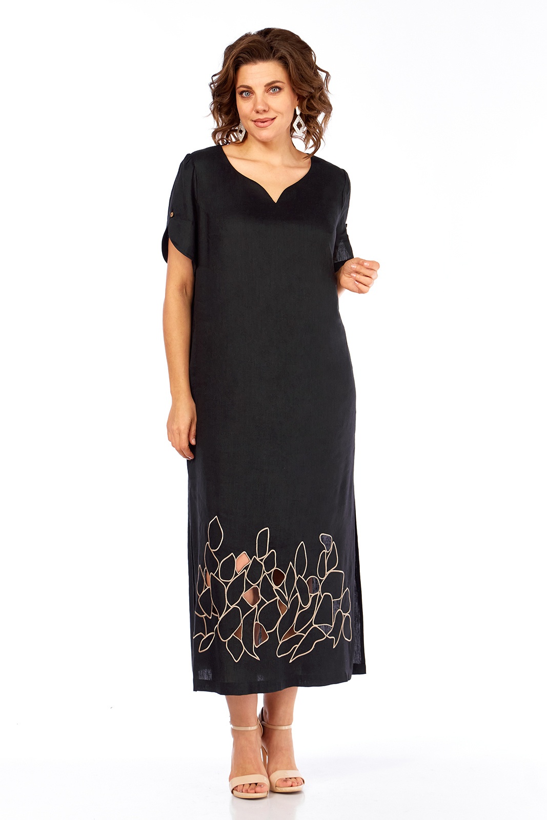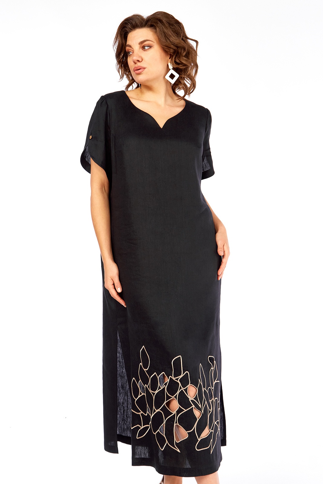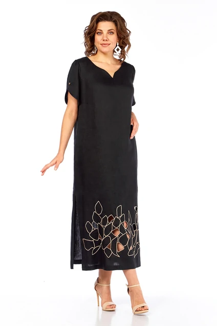 Платье 3450 Jurimex — это изысканный выбор для женщин, ценящих комфорт и стиль. Коллекция бренда Jurimex изготовлена из льна с вискозой, что обеспечивает легкость и воздухопроницаемость, идеальные для теплых сезонов. Прямой силуэт подчеркивает фигуру, а дизайнерская вышивка в стиле ришелье добавляет уникальности образу. Фигурный вырез и декоративные детали на рукавах делают его идеальным вариантом для повседневного ношения или праздничных мероприятий. Платье длиной 130 см отлично смотрится с любыми аксессуарами, а изысканный черный цвет подходит для любого случая.