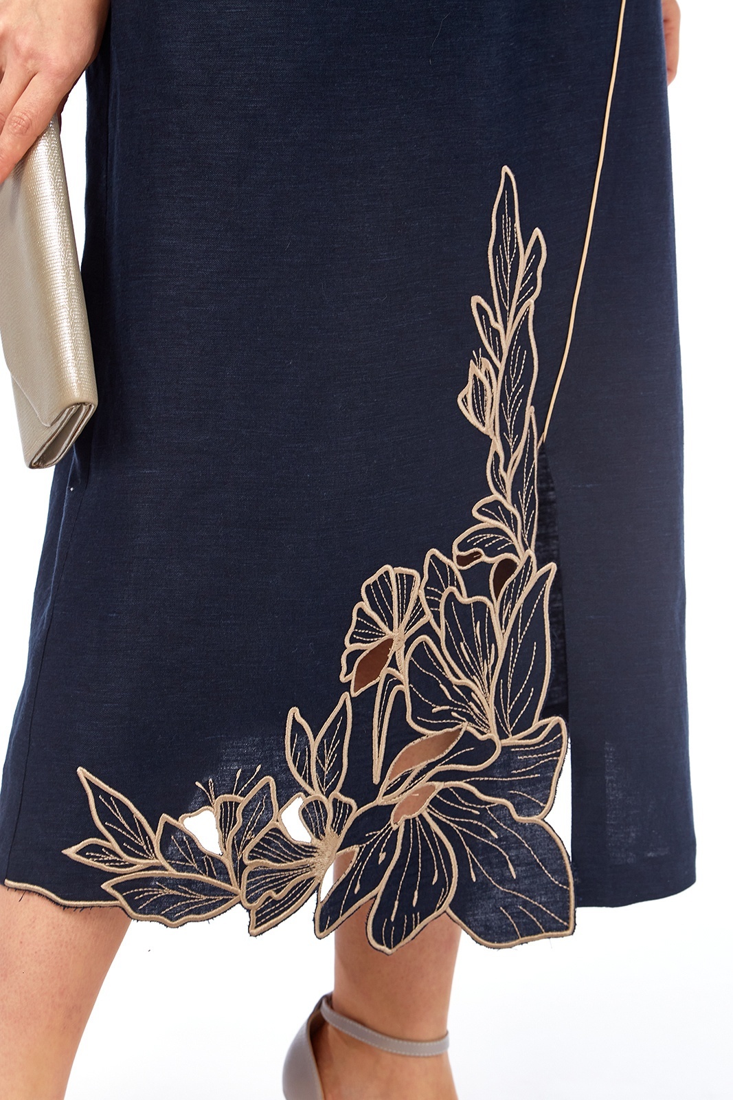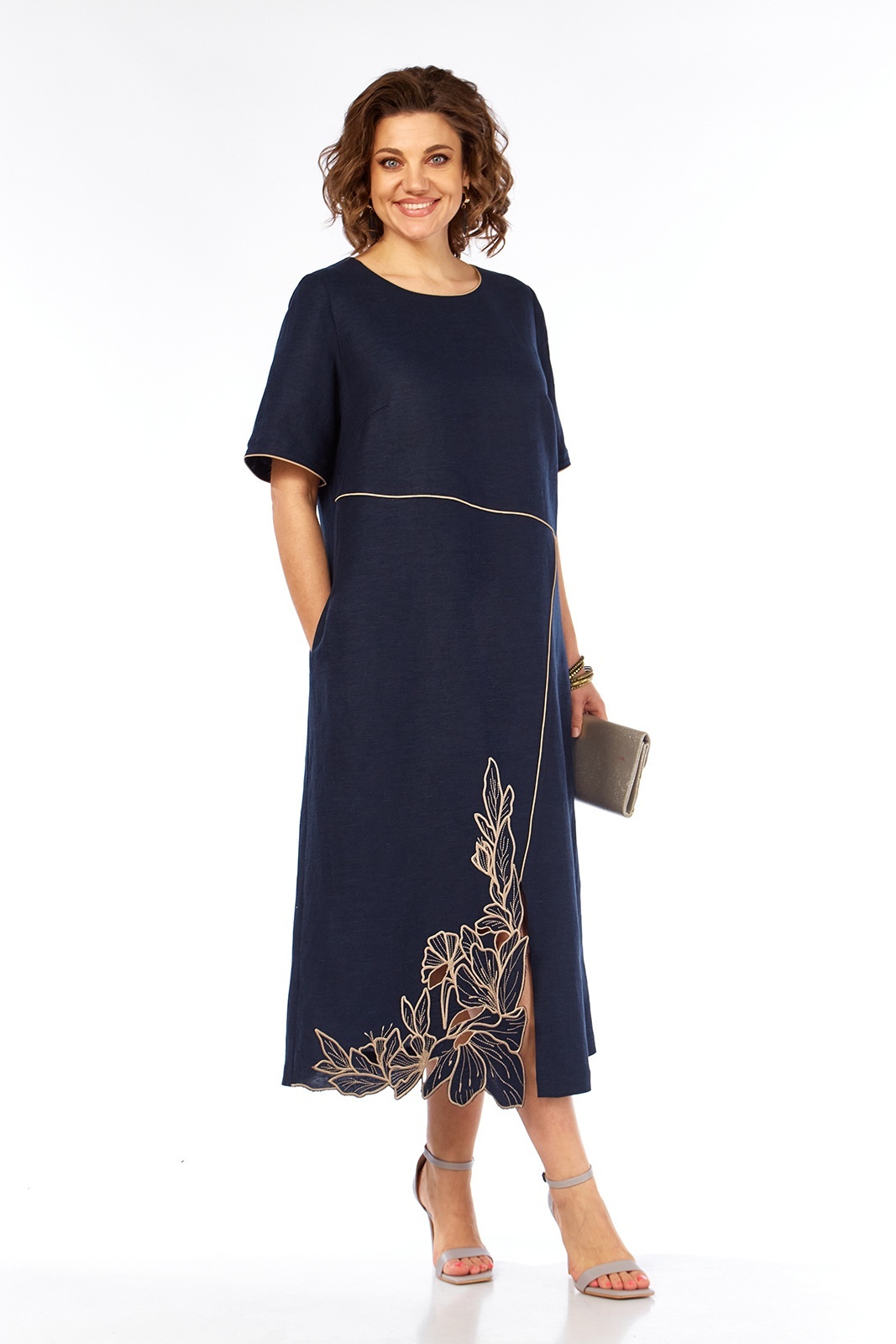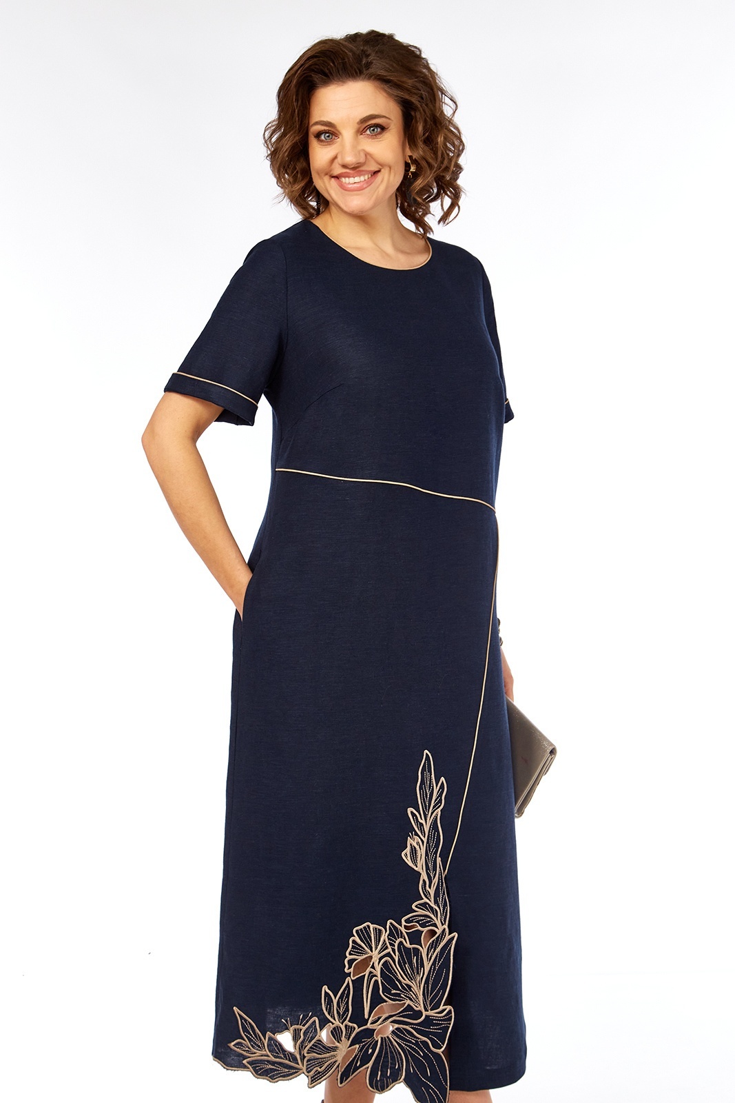 Платье 3469 Jurimex привлекает внимание своим А-силуэтом и изысканным дизайном из натурального льна. Коллекция бренда Jurimex предлагает вам стильное решение с контрастным кантом на округлой горловине и подрезах, что подчеркивает уникальный стиль этого наряда. Дизайнерская вышивка в технике ришелье добавляет оригинальности и особую изысканность. Спинка платья снабжена застежкой на навесную петлю и пуговицу, обеспечивая удобство и комфорт. Длина по спинке составляет 121 см, что делает его идеальным для легкого летнего образа. Синий цвет и короткие втачные рукава завершат ваш гардероб стильной ноткой, прекрасно подходящей для каждодневных и праздничных событий.