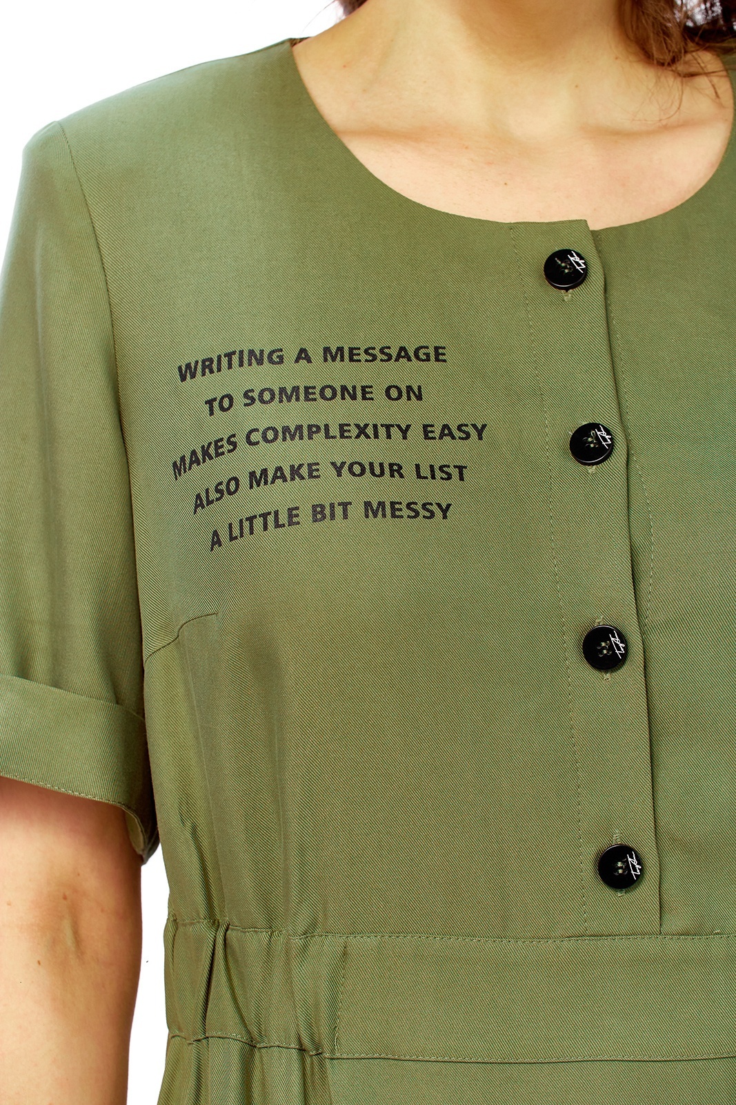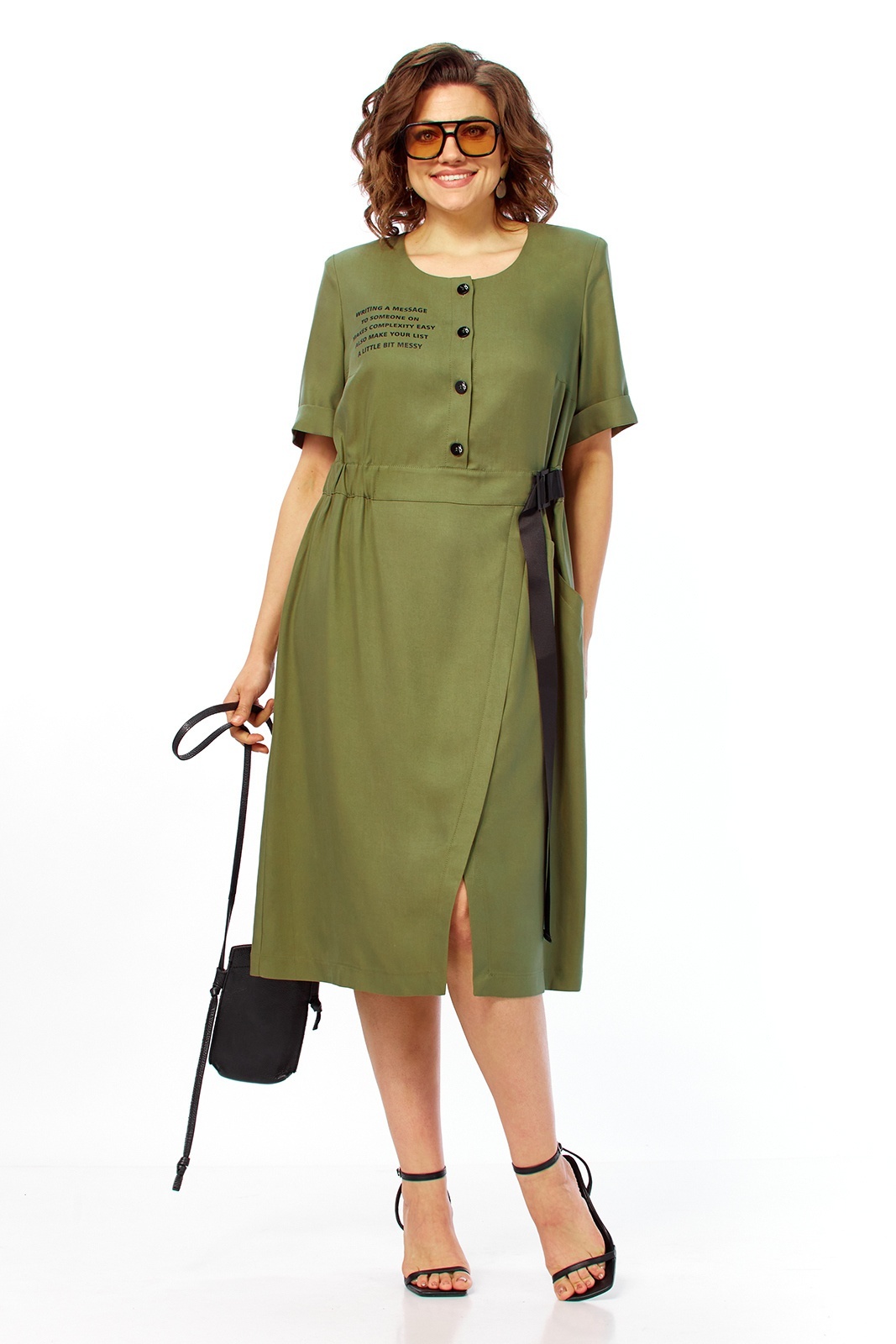 Платье 3506 Jurimex отразит вашу индивидуальность с легкостью. Коллекция бренда Jurimex сочетает качество и стиль, предлагая женственное платье А-силуэта из натуральной вискозы. Материал дарит комфорт и лёгкость, идеален для весенне-летнего периода. Изделие длиной 111 см и рукавами 28 см оформлено декоративной печатью и застежкой на пуговицы. Имитация запаха и карман с планкой добавляют функциональности и изысканности, а декоративный пояс подчёркивает талию. Оливковый цвет модели позволит легко адаптироваться к любым рабочим или повседневным мероприятиям.