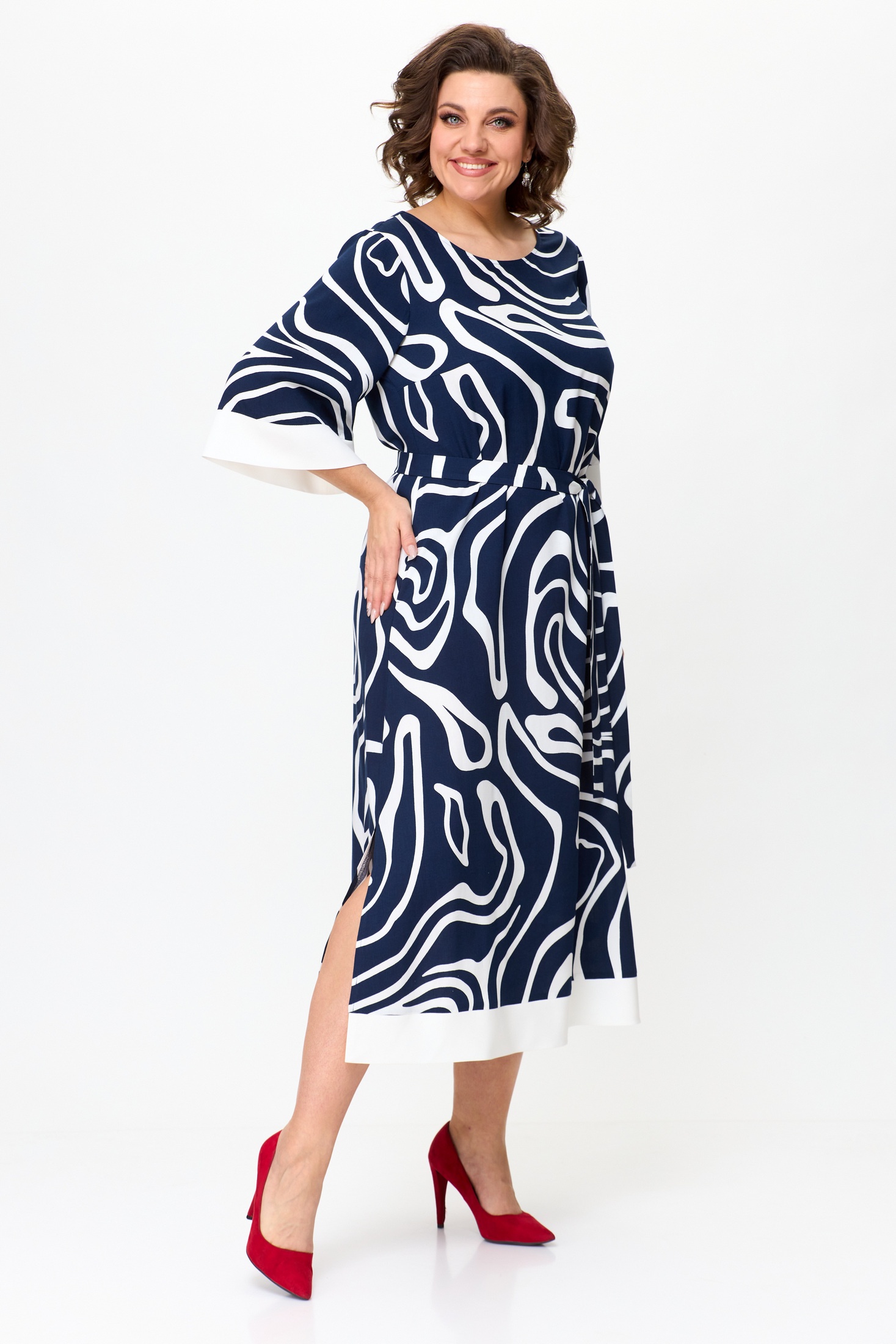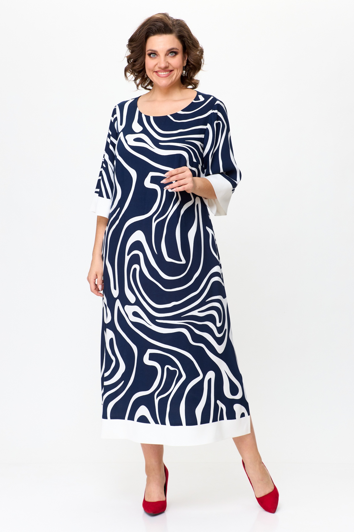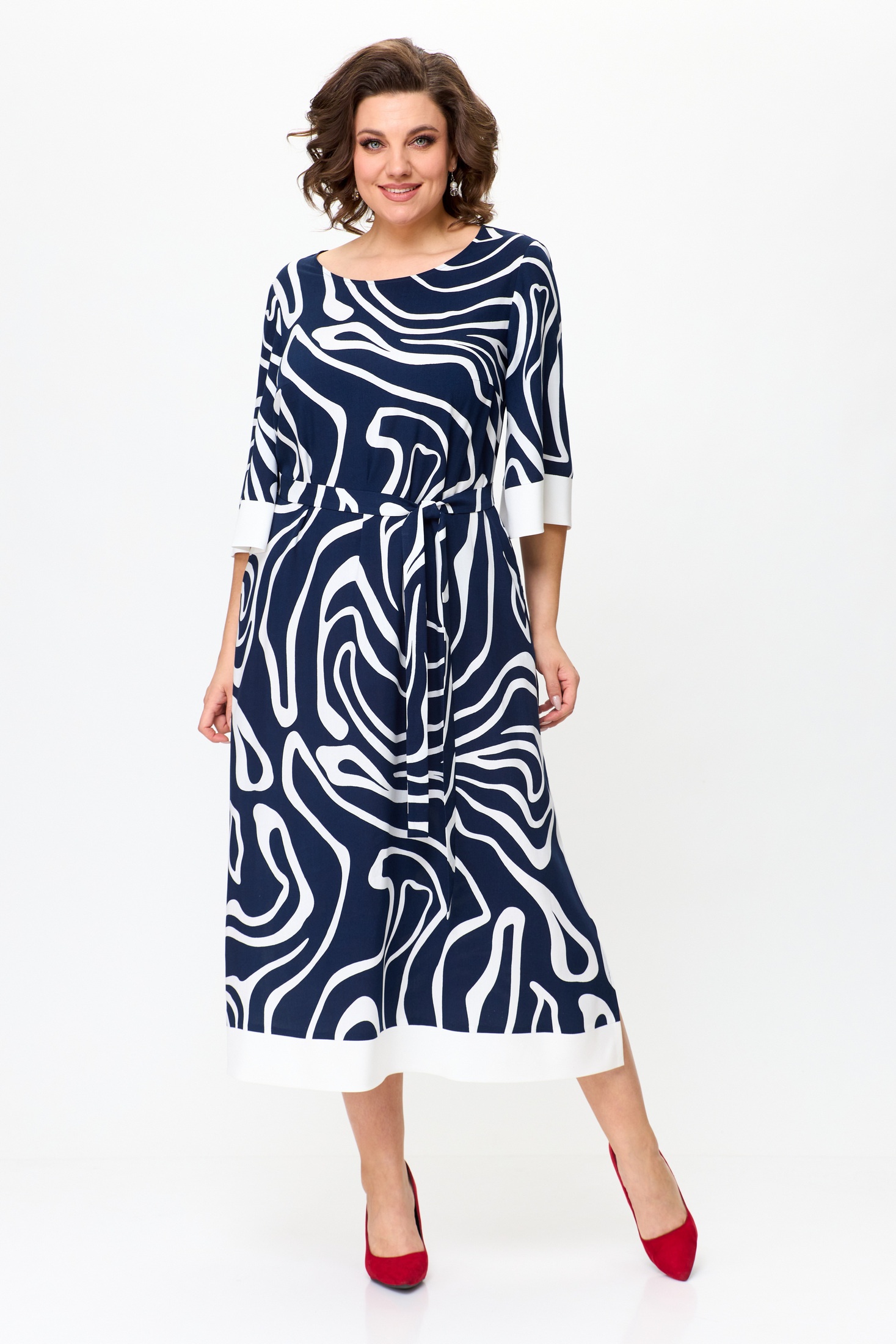 Платье 1245 синий + белый Karina Delux отражает современную женственность в коллекции бренда Karina Delux. Лёгкая вискоза обеспечивает комфорт и дышащие свойства, идеальные для теплого сезона. Платье обладает прямым силуэтом с легким расширением к низу, создавая утончённый образ. Мягкий съёмный пояс подчёркивает талию, а овальный вырез и отделка по низу светлой тканью добавляют некой изюминки. Подкладка из тонкой ткани обеспечивает дополнительное удобство. Эта модель подходит для повседневного стиля и идеально сопровождает на прогулках по городу или ужинах с друзьями. Цветовое сочетание синего и белого освежает гардероб и позволяет легко сочетать с аксессуарами.