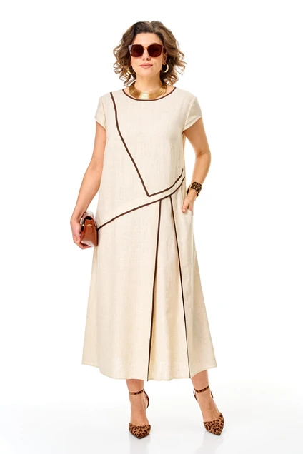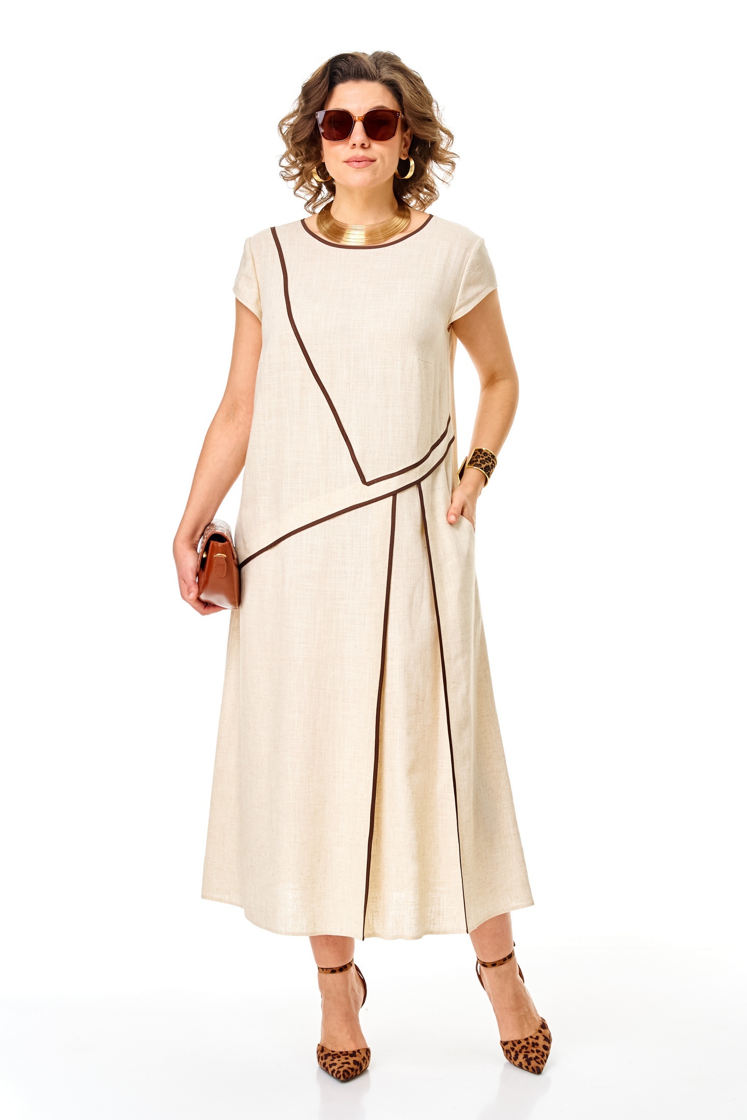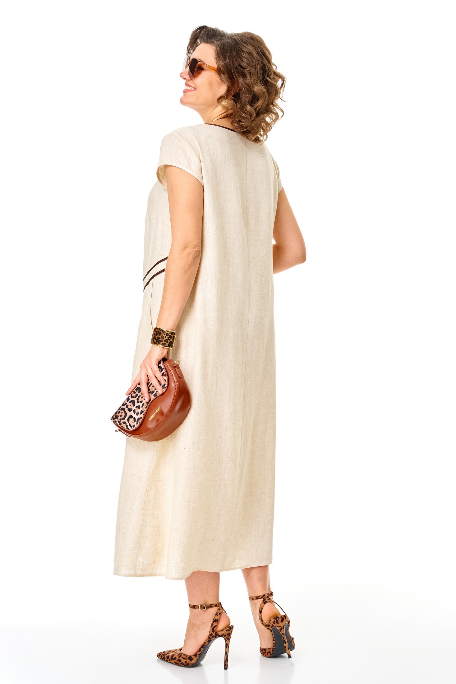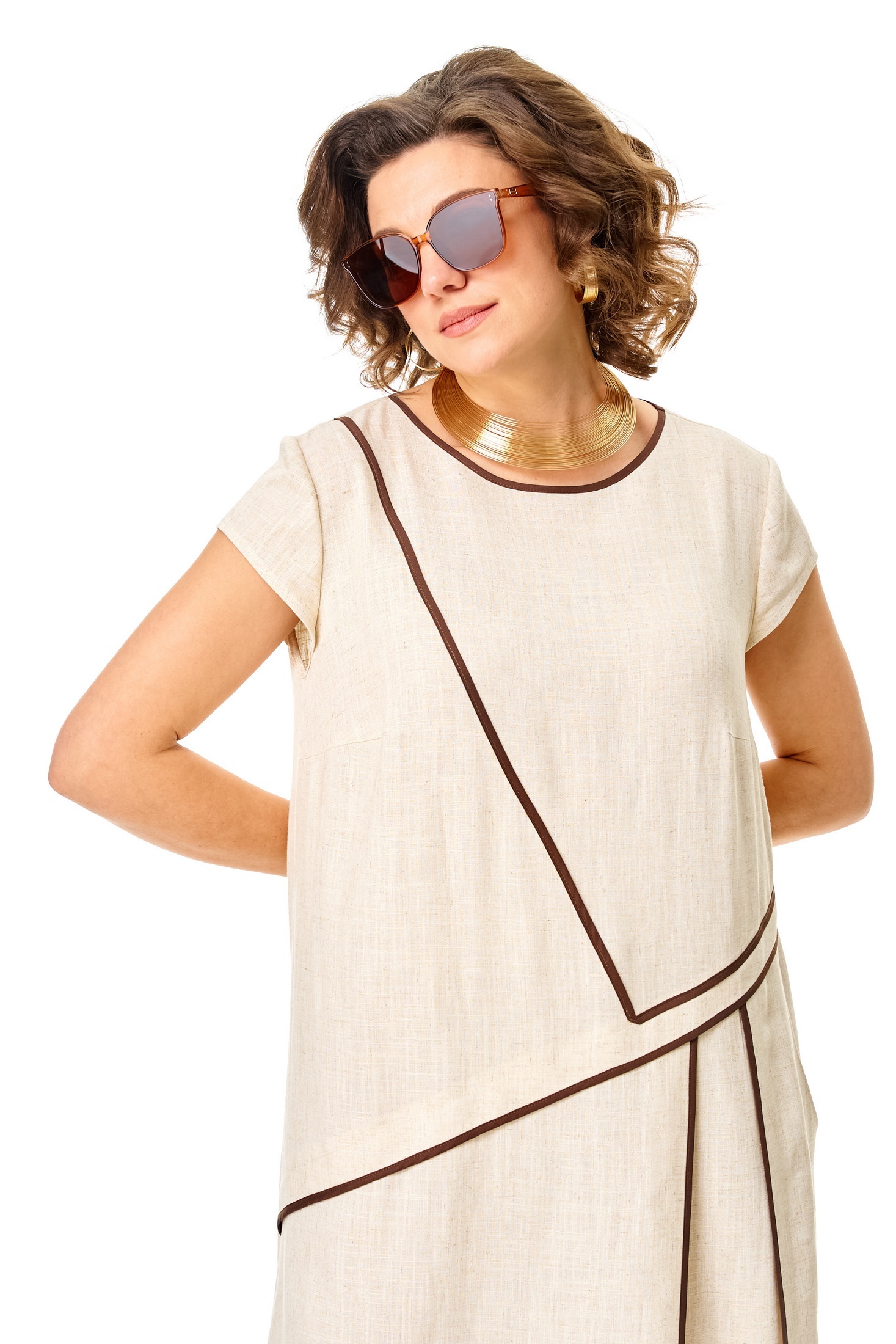 Платье 1430 бежевый Karina Delux из коллекции бренда Karina Delux выполнено из мягкого льняного полотна, что придает изделию легкость и комфорт. Состав материала: вискоза и лен, которые обеспечивают воздухопроницаемость и прочность. Трапециевидный силуэт и контрастная окантовка создают стильный и современный образ. Платье идеально подходит для теплого летнего сезона как для повседневного ношения, так и для офиса. Нейтральный бежевый цвет позволяет легко комбинировать с различными аксессуарами, добавляя элегантность в любой образ.