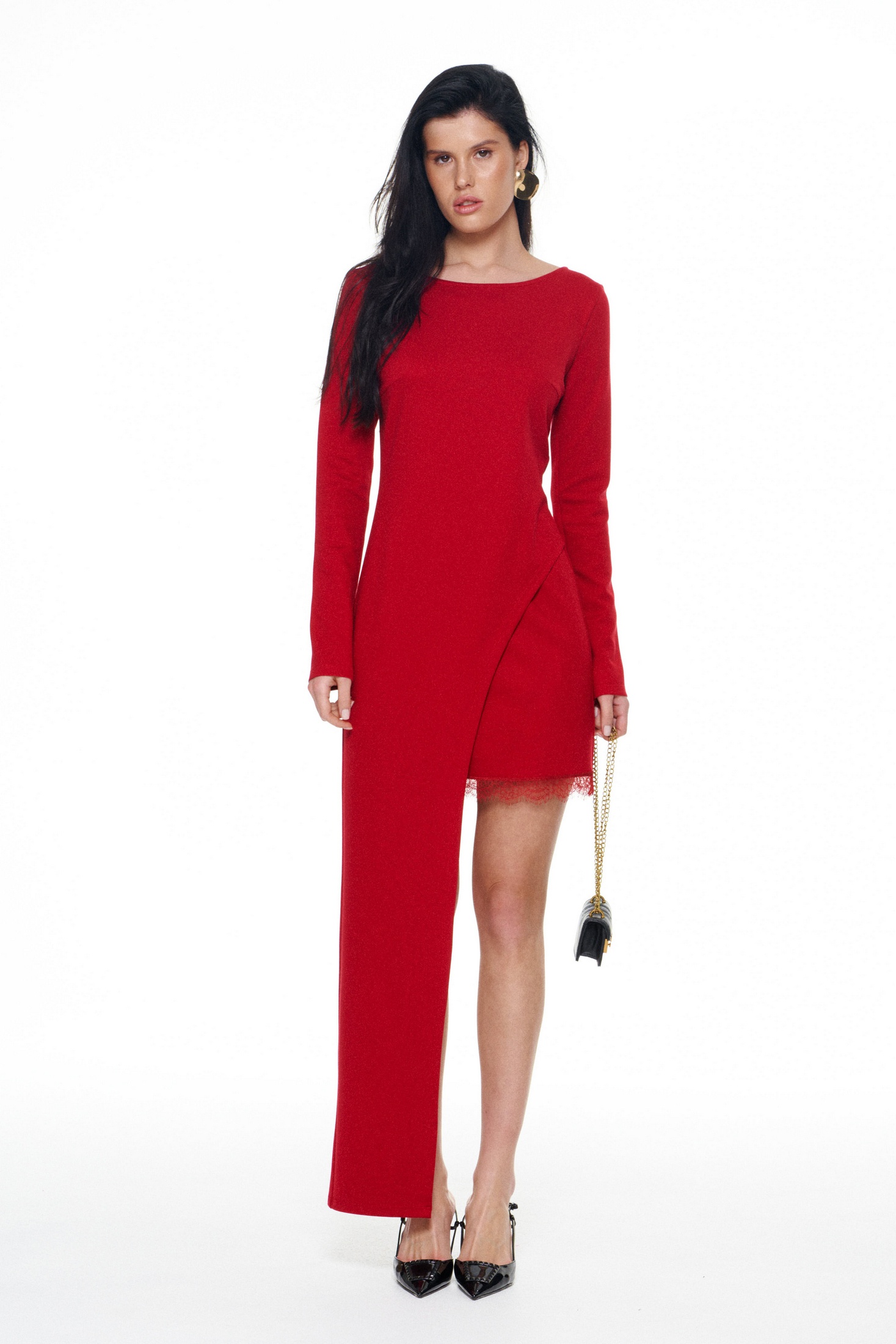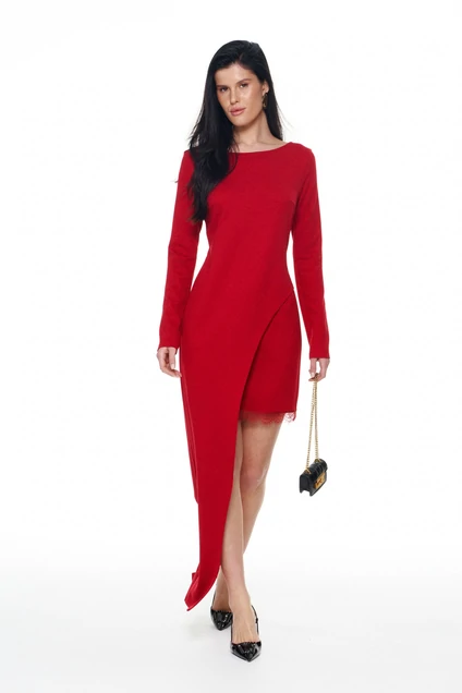 Платье 1132-1 красный KaVari предлагает уникальный дизайн и высокое качество. Коллекция бренда KaVari объединяет стиль и комфорт в этом изделии из трикотажного полотна с высоким содержанием вискозы. Джемпер с асимметричным низом и мини-юбка с тонким кружевом создают модный образ. Прилегающий силуэт и вырез-лодочка подчеркивают женственность. Длинные рукава идеально подходят для прохладного времени года. Ярко-красный цвет добавляет выразительности, подходя для вечеринки или праздника. Изделие комплектуется юбкой на резинке для дополнительного удобства.