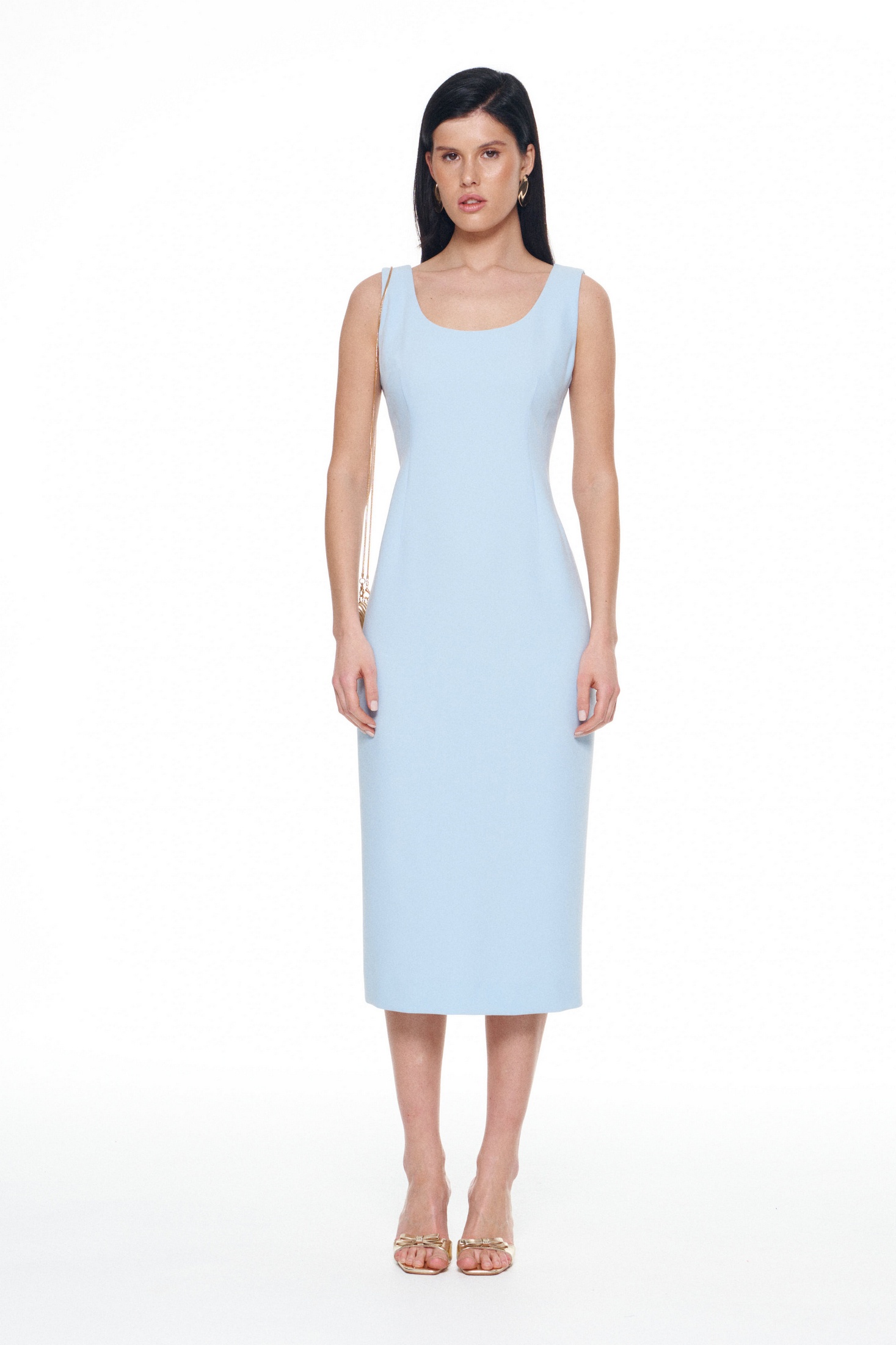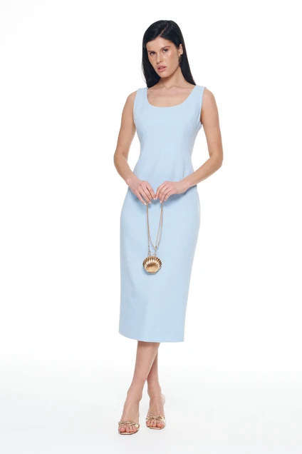 Платье 1145-1 голубой от коллекции бренда KaVari — это приталенное изделие миди-длины в нежном голубом оттенке. Изготовлено из комбинации полиэстера, вискозы и спандекса, что обеспечивает комфортную посадку и эластичность. Квадратный вырез горловины добавляет изысканности, а потайная молния и шлица на спине завершают элегантный вид. Это платье — идеальный выбор для офисных будней или праздничных мероприятий в теплое время года. Длина по середине спинке 42-48р - 105см.