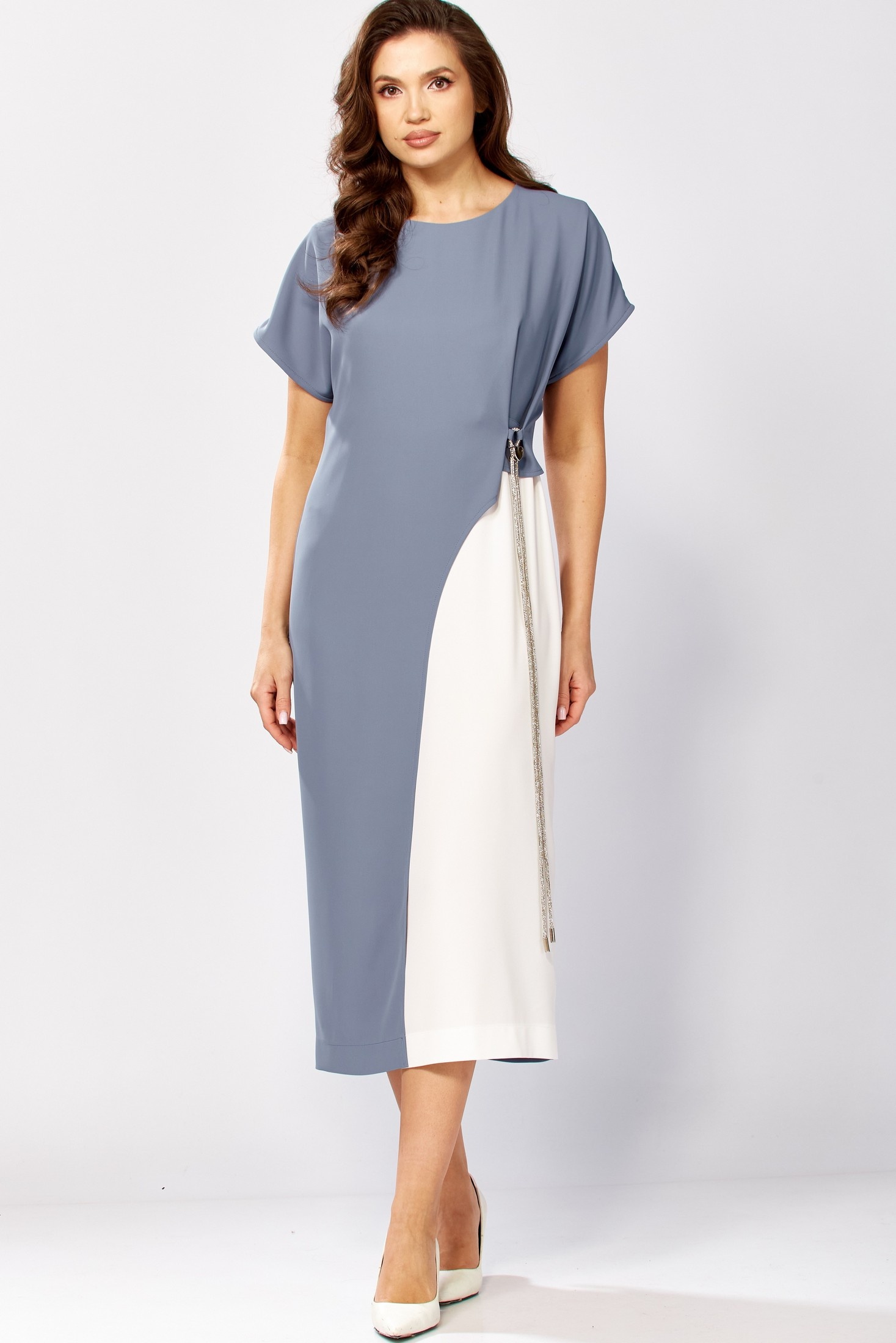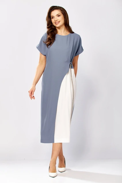 Платье 1134-1 KaVari plus size сочетает в себе современные детали и элегантность. Коллекция бренда KaVari предлагает уникальное midi-платье из струящейся ткани с асимметричным кроем. Материал включает полиэстер, вискозу и спандекс, обеспечивая комфорт и долговечность. Верх платья имеет голубой цвет с декоративной завязкой, подчёркнутой блестящими стразами. Нижняя часть выполнена в молочном оттенке, создавая контрастный эффект. Платье имеет спущенную линию плеча, задний разрез и скрытую молнию. Подходит для осеннего сезона, отлично смотрится на деловых и праздничных мероприятиях. Длина по спинке для размеров 46-50 составляет 125 см, для размеров 52-56 — 126 см.