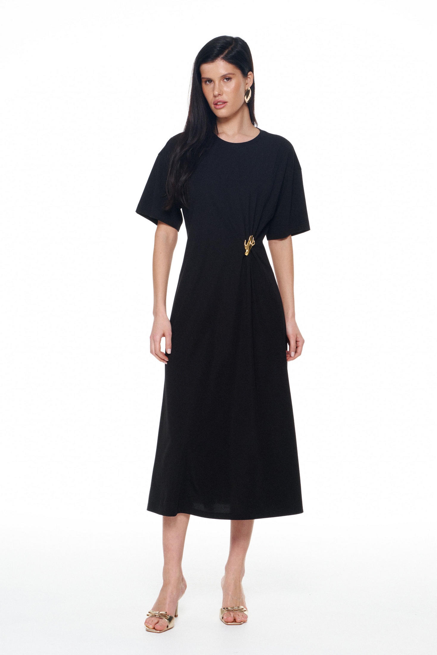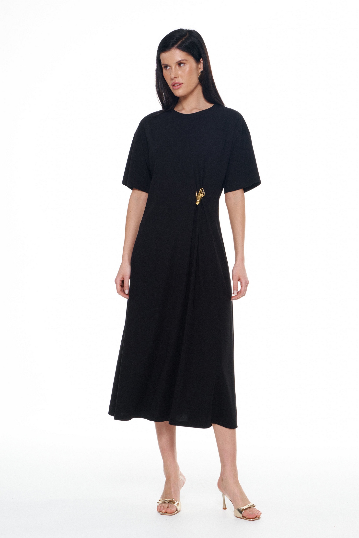 Платье 1138 от KaVari plus size — коллекция бренда, которая предлагает стиль и комфорт в каждом изделии. Свободный крой платья обеспечивает прекрасную посадку, а длина миди и спущенные плечи придают ему особую привлекательность. Изготовлено из мягкой и дышащей вискозы, дополняемой полиамидом и спандексом для лучшей эластичности. Декоративные за щипы и брошка в виде руки делают этот наряд уникальным. Это идеальное платье для межсезонья, подходящее как для повседневных выходов, так и для офисной среды. Черный цвет подчеркивает универсальность и стильность данного платья, а длина по среднему шву 125 см позволяет ощущать себя уверенно и комфортно в любой ситуации.