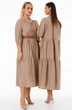 Пуговицы по переду не только выполняют практичную функцию, но и служат стильным акцентом, позволяя регулировать степень открытости платья. В комплекте идет пояс, с помощью которого можно подчеркнуть талию, создавая более структурированный образ.