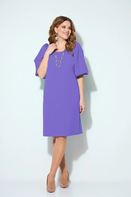 Элегантное женское платье из непрозрачной ткани средней плотности с добавлением стрейча и вискозы.Силуэт прямой.Длина платья чуть ниже колена.Вырез горловины "каре" с застежкой по спинке на потайную молнию.Оригинальность модели придает пышный рукав на подкладке со сборкой по окату и по низу рукава.Длина рукава до локтя.
