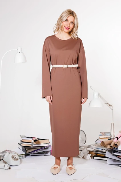 Трикотажное платье в пол с широкими рукавами. Прямой силуэт, высокий разрез сзади - это то, что сделает ваш силуэт элегантным и простым одновременно. Трикотажное полотно мягкое и пластичное. Можно сделать акцент на талии поясом. Все швы обработанны в открытую. Длина - 130 см. Пояс в комплект не входит.