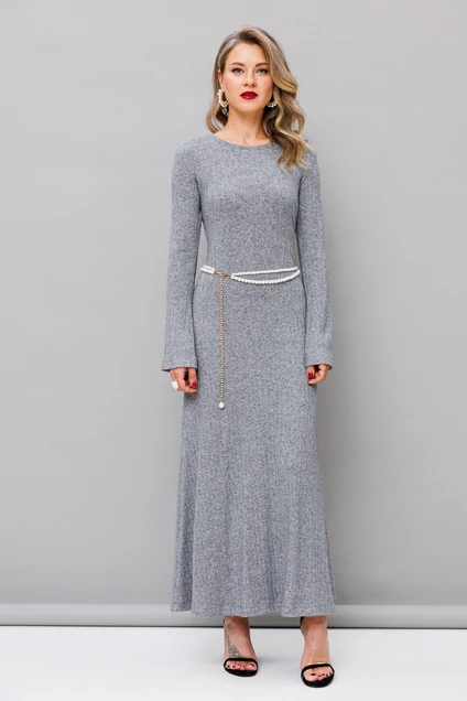Трикотажное платье в пол. Облегающий силуэт расширенный к низу. Рукав "клеш". Длина платья - 130 см
