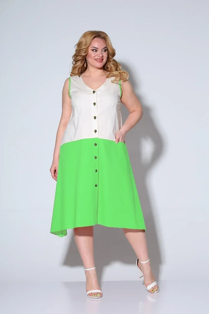 За счет удачного сочетания цветов ткани и пуговиц платье эффектно и лаконично смотрится.
