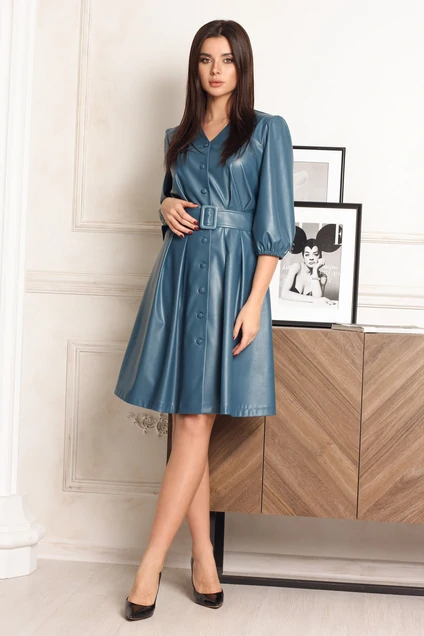 Эффектность образов с модным кожаным платьем окажется вне всяких сомнений, позволяя реализовать не просто практичные и стильные образы, но также очень выразительные и нетривиальные. Настало время пополнить свой гардероб интересными новинками. ТЕХНИЧЕСКОЕ ОПИСАНИЕ: Платье выполнено из эко-кожи, приталенного силуэта, отрезное по линии талии. Верх и низ от шва застрочены двумя складками шириной 3 см. Спинка цельная по линии талии застрочены складками. Застёжка центральная на петли пуговицы. Вырез горловины V-образный. Рукав втачной, одношовный, присборен по окату. Низ рукава собран на резинку шириной 1 см. В комплекте пояс из основной ткани. Длина платья 94 см. Длина рукава 44 см.