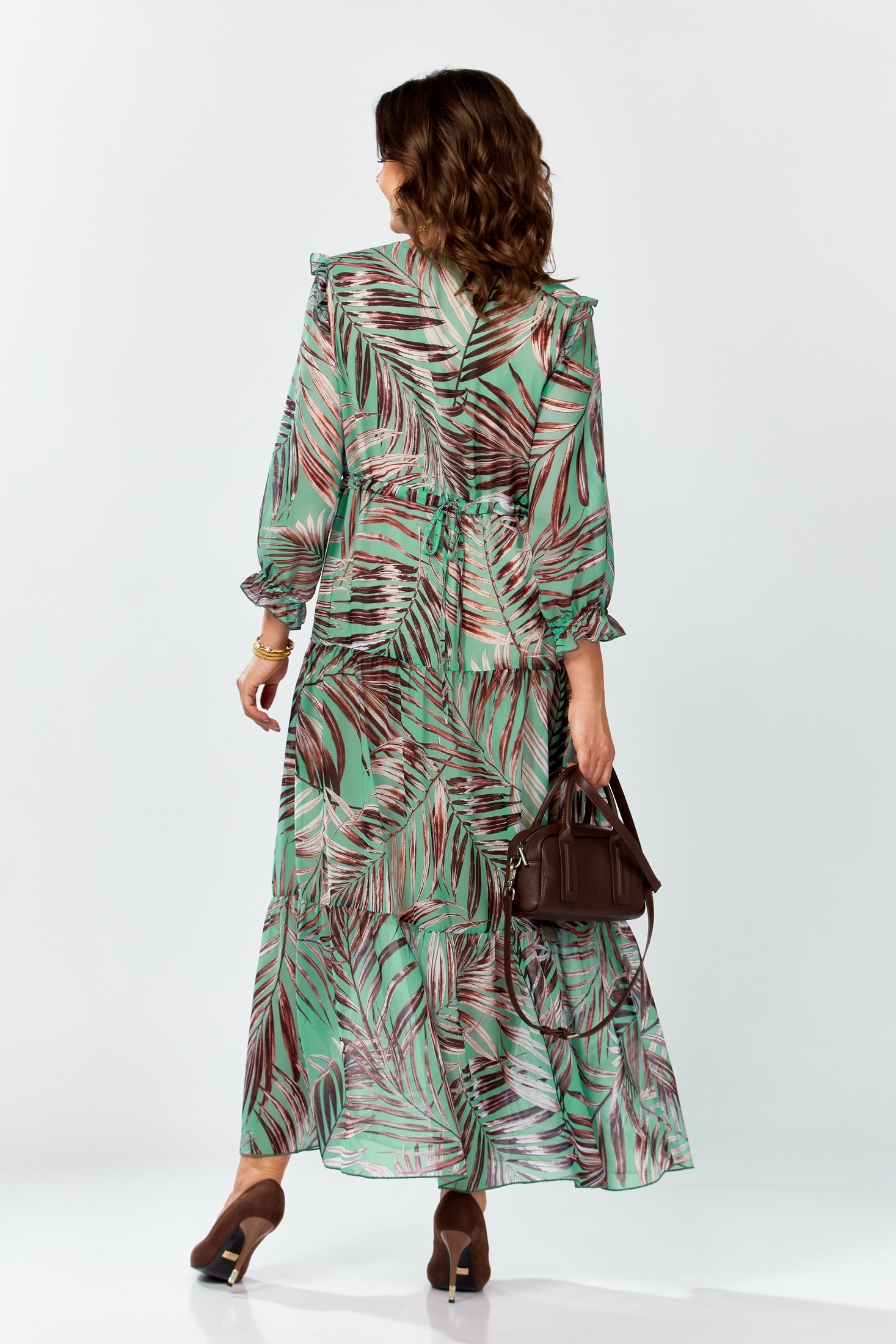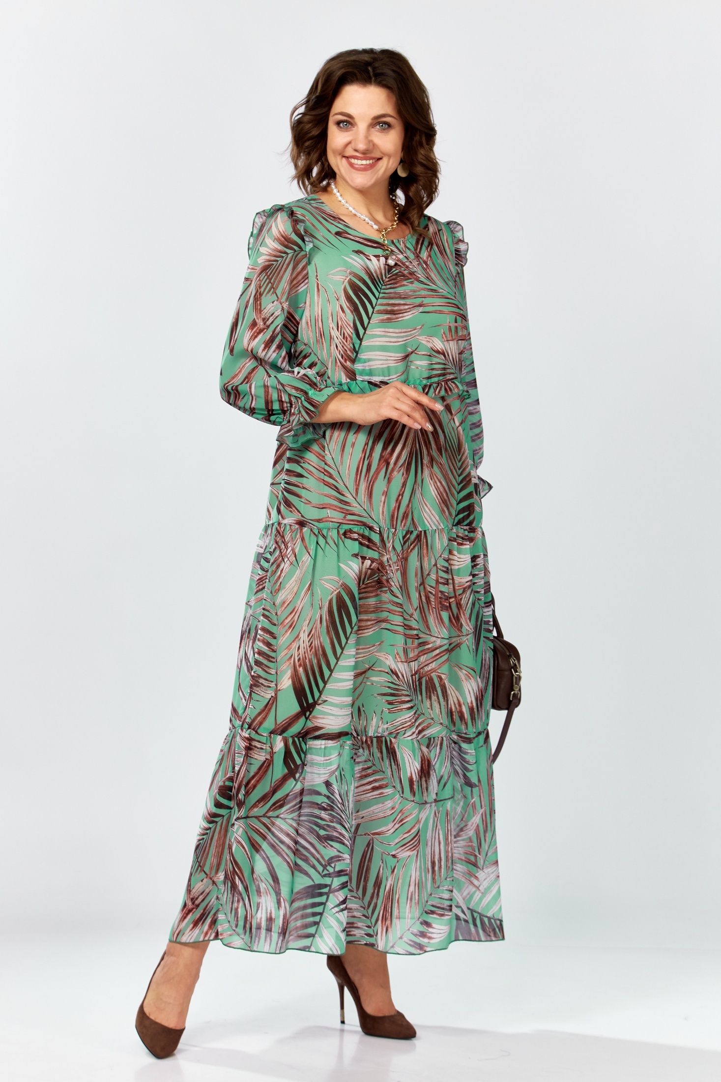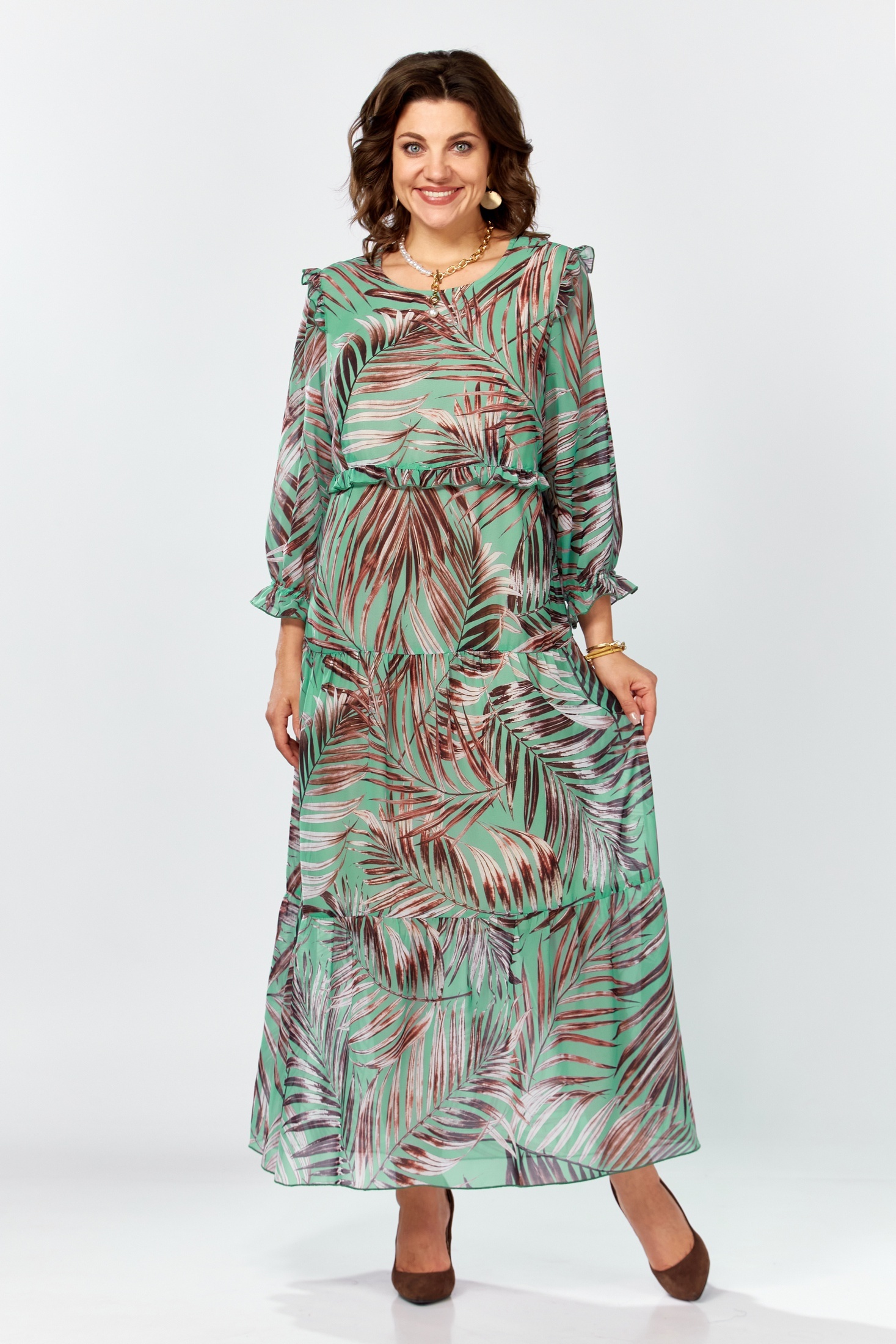 Платье 25301 пальма Ladysecret - это воплощение лета и торжества. Коллекция бренда LADY SECRET предлагает нарядную модель из легкого шифона, создающего воздушный и летящий силуэт. Maxi длина и рукав 3/4 подчеркивают классический стиль, подходящий для летних мероприятий. Декоративные рюши добавляют романтики, а возможность регулировки по талии делает платье универсальным. Идеально для свадьбы, крестин или корпоративного вечера. Зеленый цвет с узором пальмы придаст свежести вашему образу.